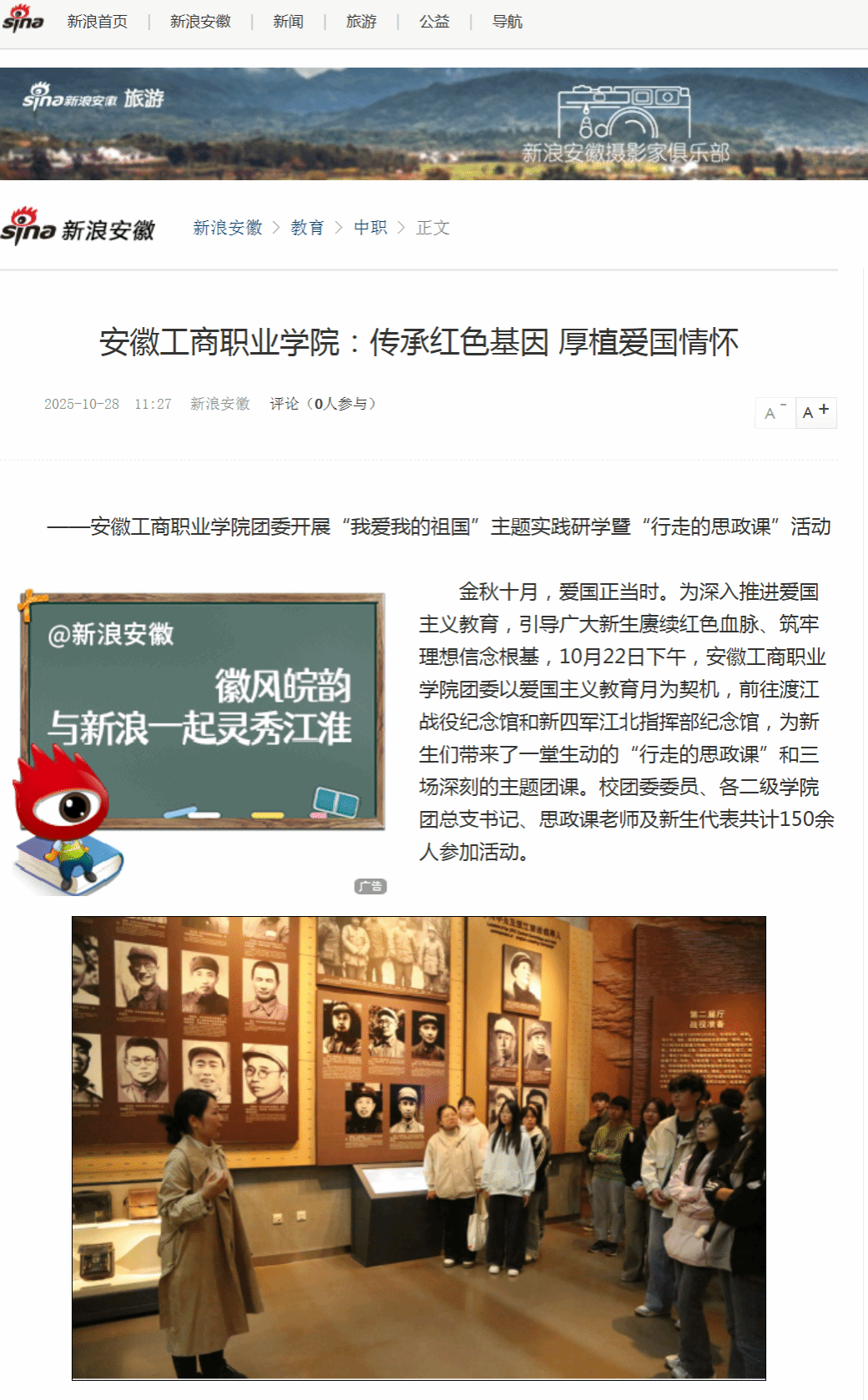 【新浪网】报道:安徽工商职业学院:传承红色基因 厚植爱国情怀