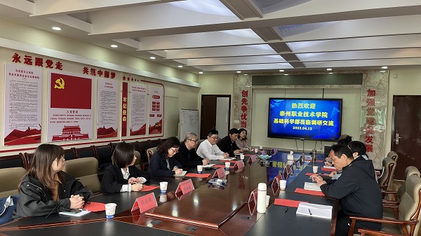 4月12日上午,泰州职业技术学院基础科学部主任丁飞 、副主任侯晓静等一行7人来我校就公共基础课程评价机制、教师教学能力大赛、学生技能竞赛、公共基础课教材建设、课程建设、公共基础课程师资培训、教学成果奖培育及公共英语分层教学等主题开展专题调研。公共课教学部主任杨忠慧、副主任刘守旺,基础课教研室徐辉、公共英语教研室许瑞松、唐亚军等参与交流。