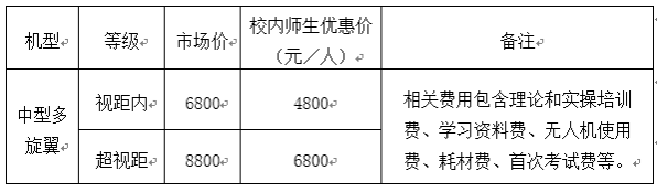 (五)在培训课程完成后,组织参加理论和实践考试,考试合格者将颁发中国民用航空局颁发的“民用无人驾驶航空器操控员电子执照”。
