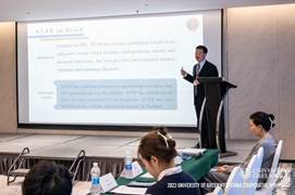 研讨会以全球视野下的人才培养和学术交流为主题,同时开展一系列专题讲座及小组交流座谈。会议首先由英国格林威治大学国际关系部主任Nicholas Hand先生致辞,随后,上海教育国际交流协会秘书长李维平先生、格林威治大学计算机与数学学院院长Mayur Patel教授、云南财经大学国际工商学院副院长尹豪教授、格林威治大学教育健康人文学院副院长Brian Boag教授先后分别作主题演讲。