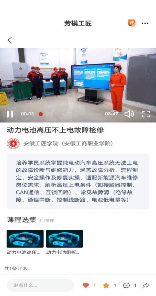 在课程资源建设方面,学校积极融入安徽省继续教育网络园区,组织专业团队进行课程数字化改造与资源推送,2025年学校共有5门社区课程获评“省级优秀课程资源”,同时开发的多门特色工匠课程已上线全国总工会“职工之家”APP,实现优质资源跨平台共享。