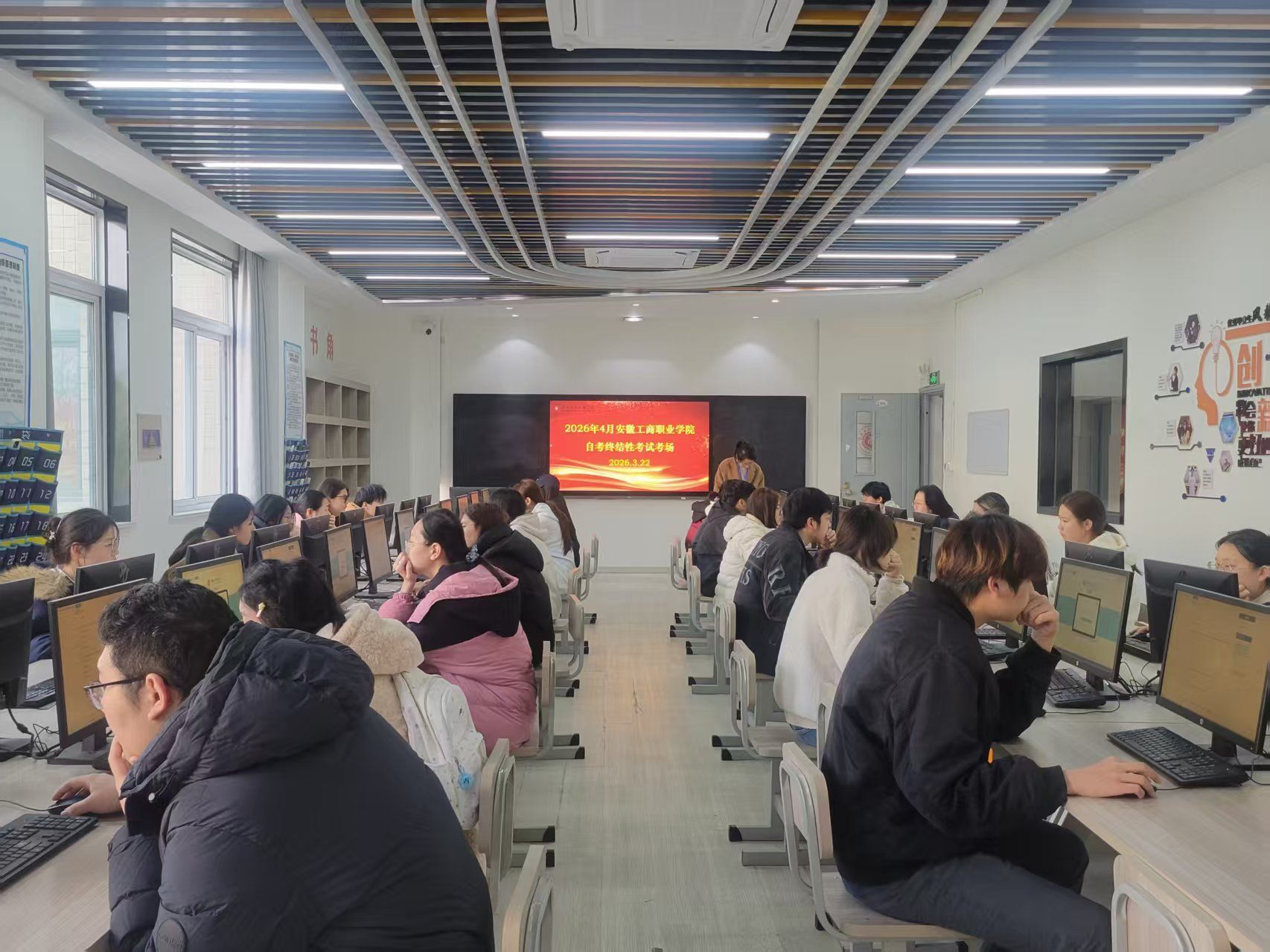 2026年3月22日,安徽开放大学继续教育学院张艺璇一行亲临我校,对我校2025级会计、人力资源专业的自考学生进行自考终结性上机测试。这是我校自考助学中心首次为学生采用上机测试。
