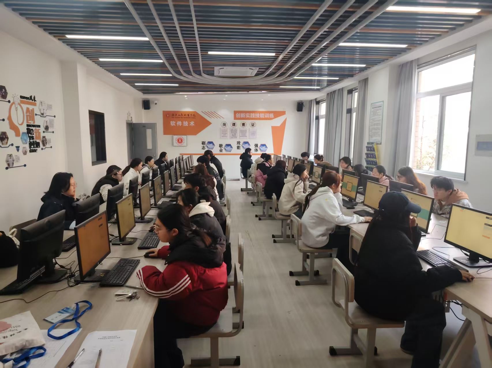 为做好此次终结性上机考试工作,为学生提供人性化、便利化的服务,此次考试就定在我校举行。我校继续教育学院和安徽开放大学继续教育学院做了大量的前期准备工作,就机房安排、机房管理员的培训,考试软件的安装进行了充分的沟通。安徽开放大学继续教育学院也组织了专家和监考教师来我院确保考试顺利。
