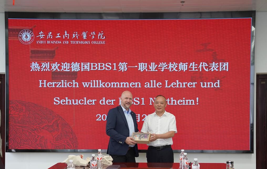 齐建平代表全校师生对代表团的到来表示热烈欢迎。在致辞中,他回顾了多年来在安徽省教育厅的指导下,两校频繁交流互访所积淀的深厚情谊及携手共进的发展历程。强调我校高度重视与德国诺特海姆第一职业学校的友谊,自2008年两校签署合作备忘录、缔结友好学校以来,双方在师生互访、技术交流等方面已取得显著成效。此次诺特海姆第一职业学校副校长塔门·斯文(Tammen Sven)一行的来访,不仅延续了两校十七年来的友好传统,更是对中德职业教育合作新机遇的积极响应。希望未来双方能不断深化务实合作,为学生提供更多接触世界、了解世界的机会,使教育更加开放、包容,更具国际视野。