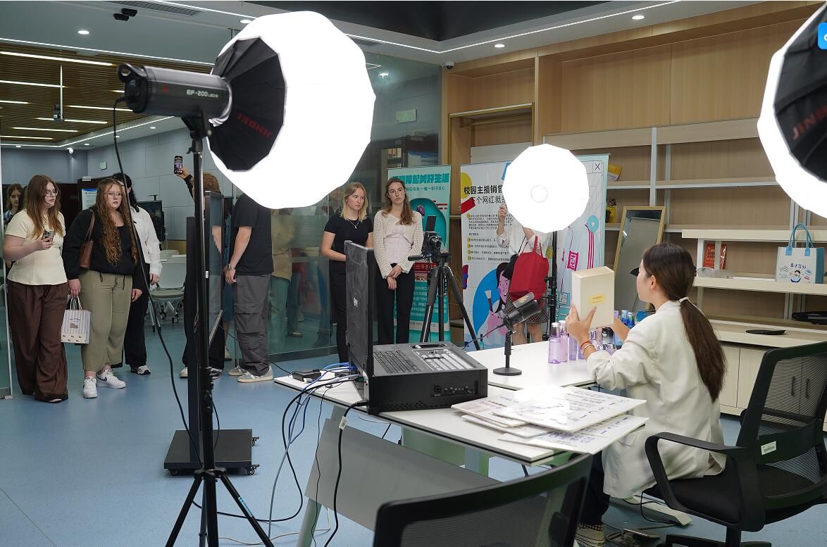 座谈会结束后,交流代表团参观并体验了我校信息工程学院的人工智能与虚拟仿真中心。随后,他们走进管理学院的电商直播教学课堂,观摩了直播演练。此外,代表团还参与了由校团委组织的手工制作体验活动以及我校老年大学的教学活动。在动手实践与交流互动的过程中,代表团成员不仅增进了知识,也加深了彼此间的友谊。