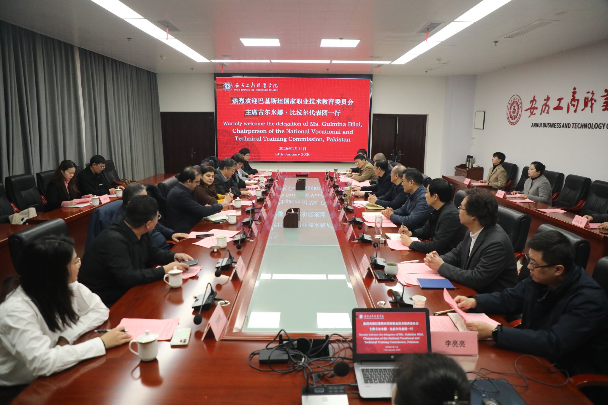 1月14日上午,巴基斯坦国家职业技术教育委员会代表团与安徽省教育发展基金会一行到访我校。校党政领导班子齐建平、陈行、陈章奇、吴松飞、刘浩、孔成热情接待了来访嘉宾。校办公室、组织人事处、党委宣传统战部、教务处、智能制造与汽车学院、国际交流与继续教育学院等相关院部处室负责人参加了交流活动。
