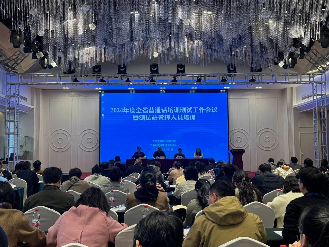 3月12日上午,2024年度全省普通话培训测试工作会议暨测试站管理人员培训会议在合肥召开,全省111个普通话测试站站长、管理人员共200余人参会。会议由省测试中心韩伟光老师主持。我校国际交流与继续教育学院院长、普通话测试站站长舒文存,普通话测试站管理员韩颖老师参会。