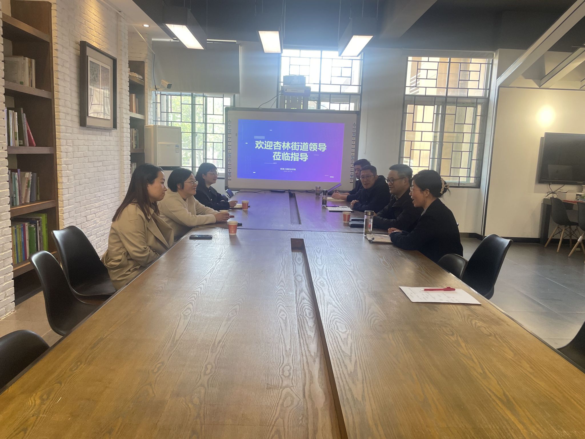4月8日下午,合肥市杏林街道党工委副书记常静一行来我校调研交流社区培训情况。我校国际交流与继续教育学院院长舒文存、艺术设计学院院长魏芬、艺术设计学院党总支副书记张乐等相关工作人员参加。