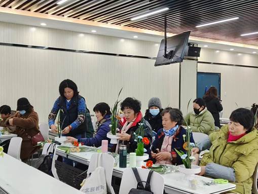 手有余香、目浴芬芳。为进一步提升我校老年大学学员的审美和生活品位,12月23日上午我校在庐阳校区举办了“老有所乐、动手有艺”主题艺术插花培训班。来自我校和社区退休职工等十多位学员参加了本次培训活动。虽然冬日天气寒冷,但各位学员热情高涨,早早地来到活动现场等候,期待感受插花艺术的魅力。