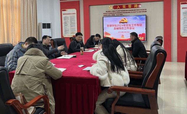 校党委委员、发展规划与质量管理处处长、管理学院院长朱小龙结合我院2024年的招生计划和学院专业发展对此次招生向参会人员进行了动员,他指出各教研室要主动出击,通过专业对口交流等方式挖掘潜在生源。同时通过各种渠道加强招生宣传广度和深度,积极谋划、扎实推进,促进招生工作稳步推进,完成我院招生计划目标。与会同志纷纷发表意见,集思广益,提出了许多可行性的意见和建议。