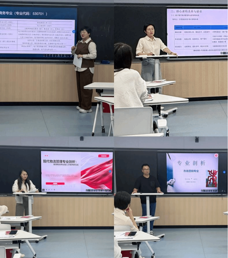在随后的说课环节,四位教师分别以《电子商务基础》《内容策划与编辑》《现代物流基础》《商务谈判》等专业课程为例,围绕课程定位、教学内容、教学方法与手段、课程评价等方面展开生动讲解。教师们紧密结合行业发展趋势与学生学情,灵活运用案例教学、项目驱动、实战演练等多元化教学模式,充分体现了“以学生为中心”的教学理念,落实了应用型人才培养的目标。