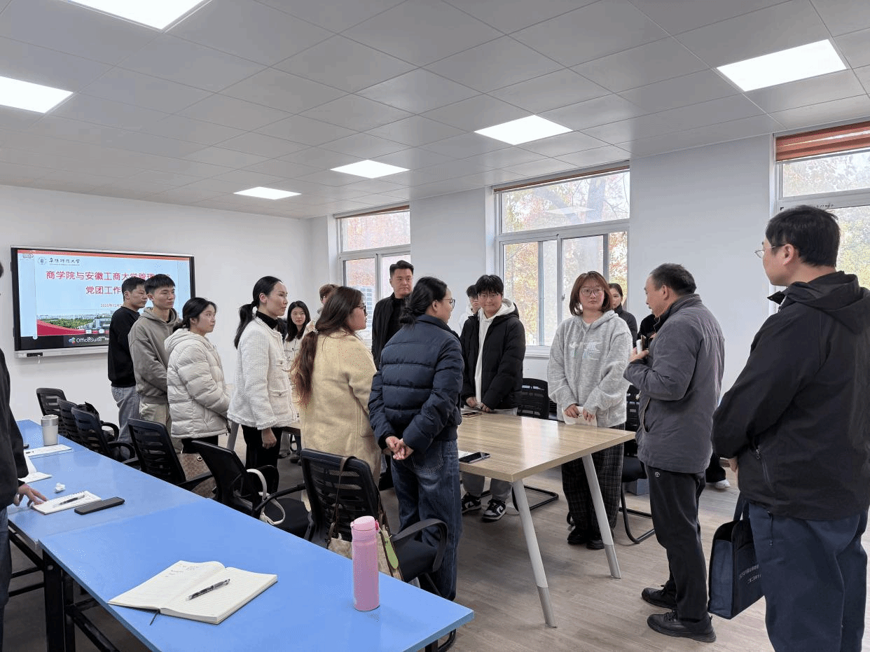 为深化党建引领作用,推动“党建带团建”与人才培养深度融合,促进联合培养模式下的教育教学协同发展,2025年12月5日,阜阳师范大学与安徽工商职业学院管理学院围绕党建共建、支部建设、专业教学等核心议题,开展了一场内容丰富、务实高效的校际联合活动,为两校协同育人搭建起互学互鉴的坚实平台。