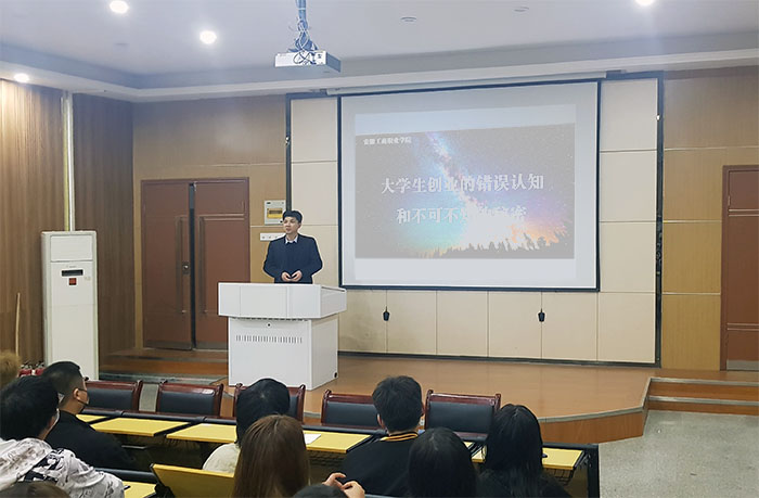 为活络现场气氛,让同学们更快进入状态,杨光老师从几个简单互动性强的热脑游戏引导大家发散思维,学会思考问题的多样性。并结合淘宝、京东、华为等公司的创业历程案例,从创业群体、影响创业成功因素、创业技能、创业精神等方面让同学们获取了相关创业知识,让同学们认识到创业需要各方面细致的准备,准确的判断能力以及对自我的不断加持。最后,为贯彻落实安徽省人社厅和教育厅关于安徽省创业服务平台的全面推广和使用,推动各类创业资源向高校聚集,对大学生开放,在场同学对该平台的注册和使用进行了学习。