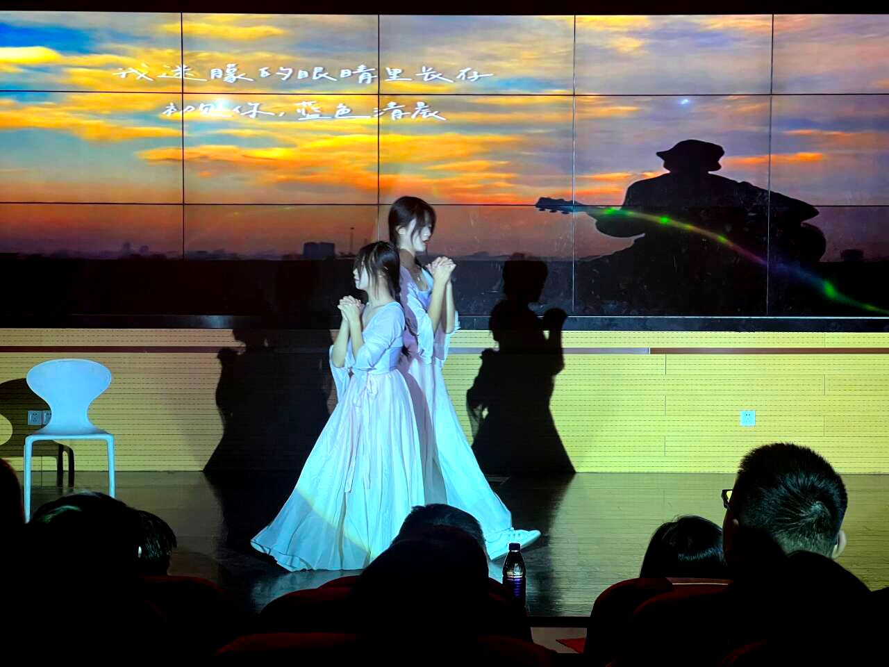 “我就盼着你给我争气呢啊!”、“你这是写字啊你这是!这锄头耙子似的这个,你这样能考上大学吗你?”、“你给爸争气了啊,念了大学,有了工作,成家了!”演员“父亲”微微的一个颤抖,轻抬的一个眼神都诠释着父爱如山。 朗诵表演《父爱》饱含深情,现场观众深刻感受到父爱的无私与亲情的伟大,始终沉浸在现场温暖走心的氛围里;歌曲演唱《父亲的散文诗》将整场活动推向了高潮,轻柔的旋律,感人的画面,深情的歌词,公益的广告,真情的表演,触动同学们和老师们的心灵,现场不少同学潸然泪下、眼噙泪花。惊风飘白日,光景西驰流。随着《父亲》伴奏响起,本期道德讲堂在所有参演演员和23级同学的合唱和热烈掌声中落下了帷幕。
