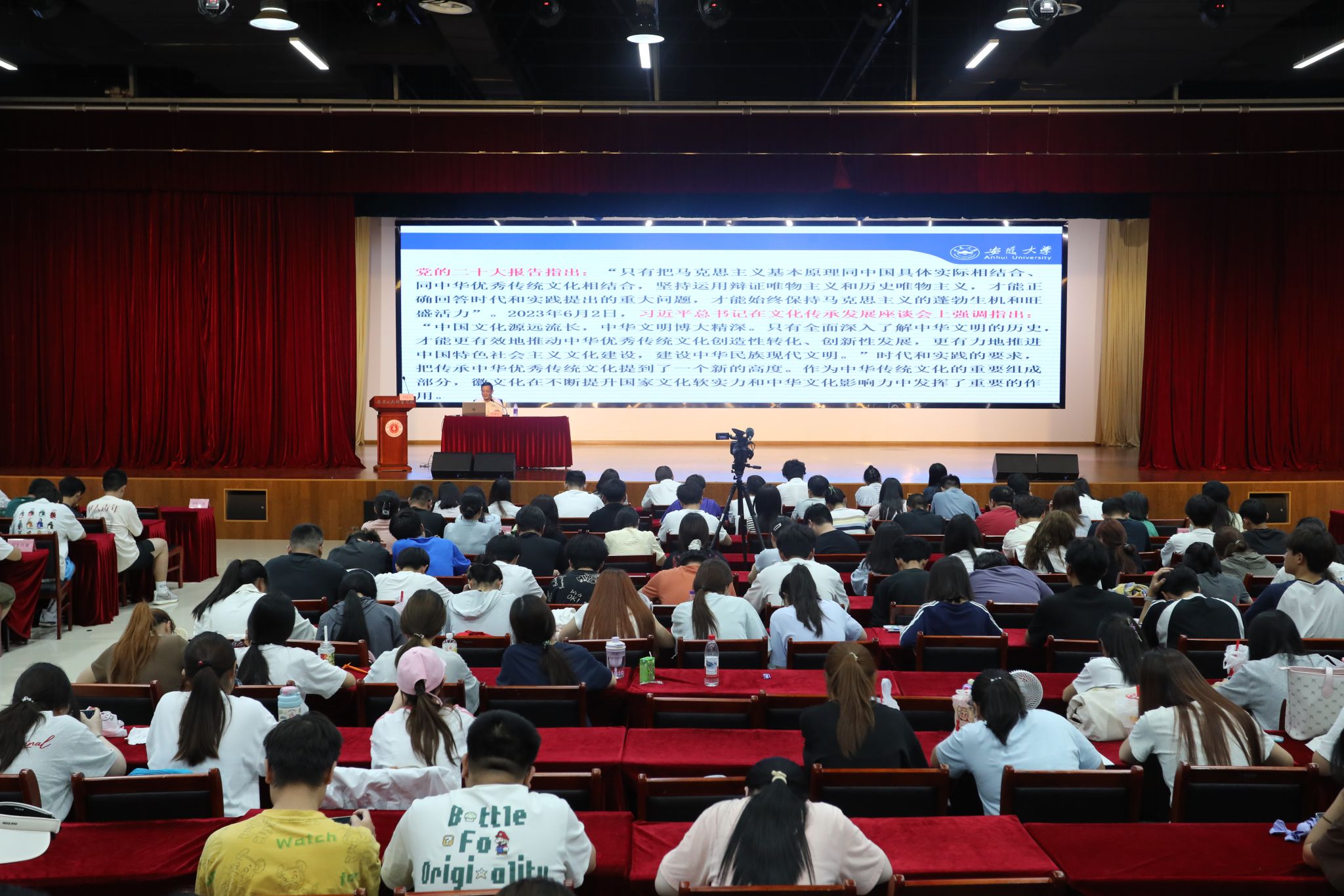 讲座最后,周晓光着重探讨了 “徽文化的时代价值”。当前,徽文化所蕴含的家国情怀、诚信理念、创新精神等核心价值,依然具有强大的生命力和现实意义。他勉励青年学子,新时代新征程上,要以习近平文化思想为指引,更好担负起新的文化使命,了解好、传承好、利用好徽文化,助力谱写好中华民族现代文明的安徽篇章。