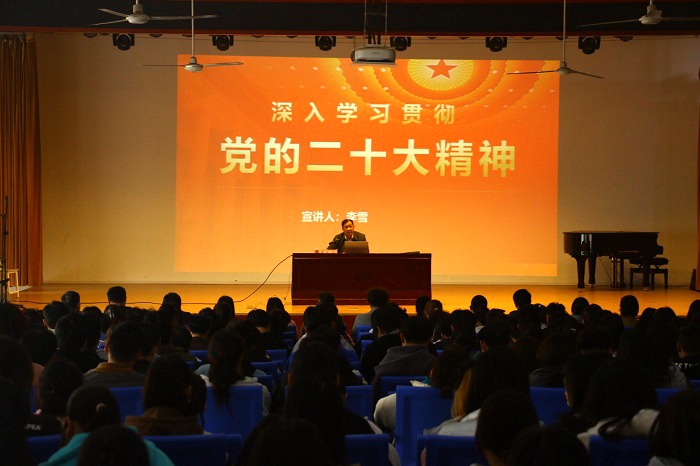 李雪从深刻领会党的二十大重大意义、准确把握党的二十大精神实质、深刻理解“统筹职业教育、高等教育、继续教育协同创新,推进职普融通、产教融合、科教融汇,优化职业教育类型定位”三个方面解读了党的二十大报告,对党的二十大精神作了系统宣讲。