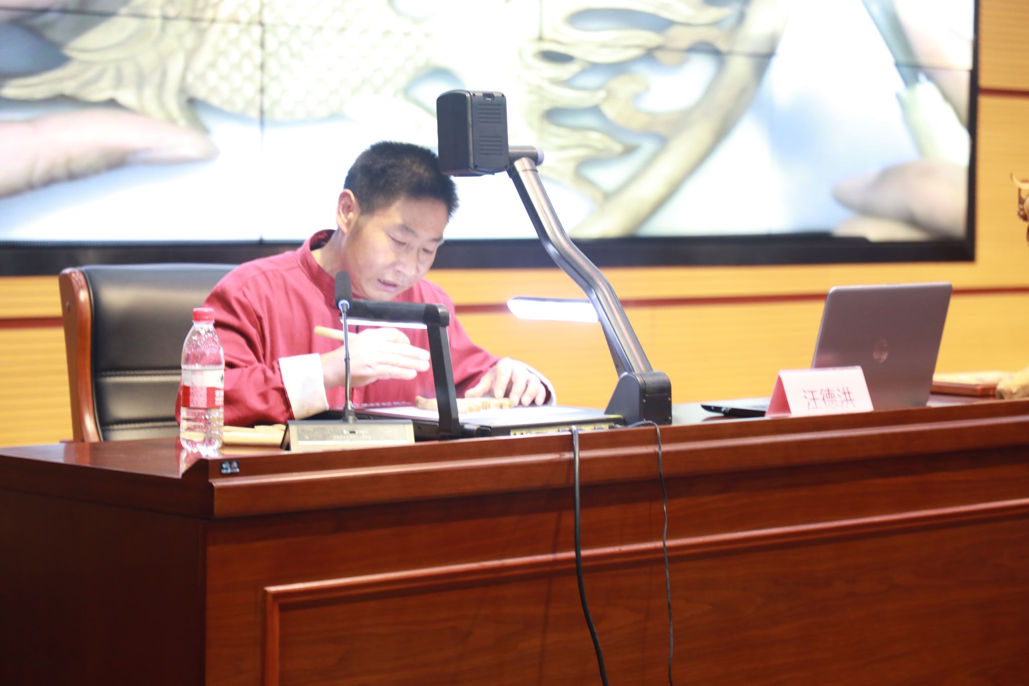 据悉,汪德洪作为国家级非物质文化遗产徽州木雕技艺代表性传承人,黄山市黟县宏村人,自幼深受徽州文化熏陶,醉心于徽派民间雕刻工艺的探索和研究,从艺近三十载,博采众长,风格独到。2023年1月,汪德洪应邀荣登2023年安徽卫视春节联欢晚会舞台,展示新创作徽州木雕作品《安徽舰》并赠送给安徽舰全体官兵,代表全省人民送去家乡的新春祝福。(撰稿:胡佩佩 审核:孔成)