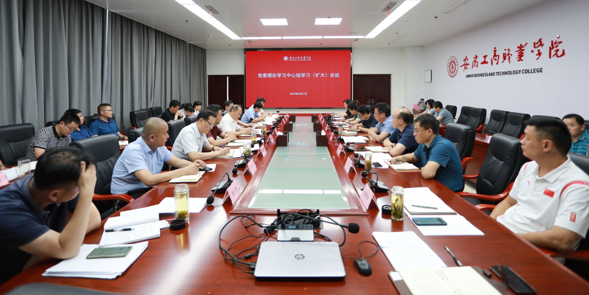 6月21日下午,校党委理论学习中心组召开学习会,集中学习了习近平总书记在中央政治局第五次集体学习时、在文化传承发展座谈会上、在内蒙古考察时、在二十届中央国家安全委员会第一次会议上的重要讲话精神,学习了省委书记韩俊在省委主题教育领导小组第二次会议暨主题教育座谈会上的讲话精神,学习了省委常委会有关会议精神。党委委员、副院长陈章奇领学了《习近平著作选读》第二卷有关篇目。教务处处长张震、会计学院党总支书记赵艳围绕学习内容作交流发言。校领导、院处室主要负责人参加学习,党委书记齐建平主持学习并讲话。