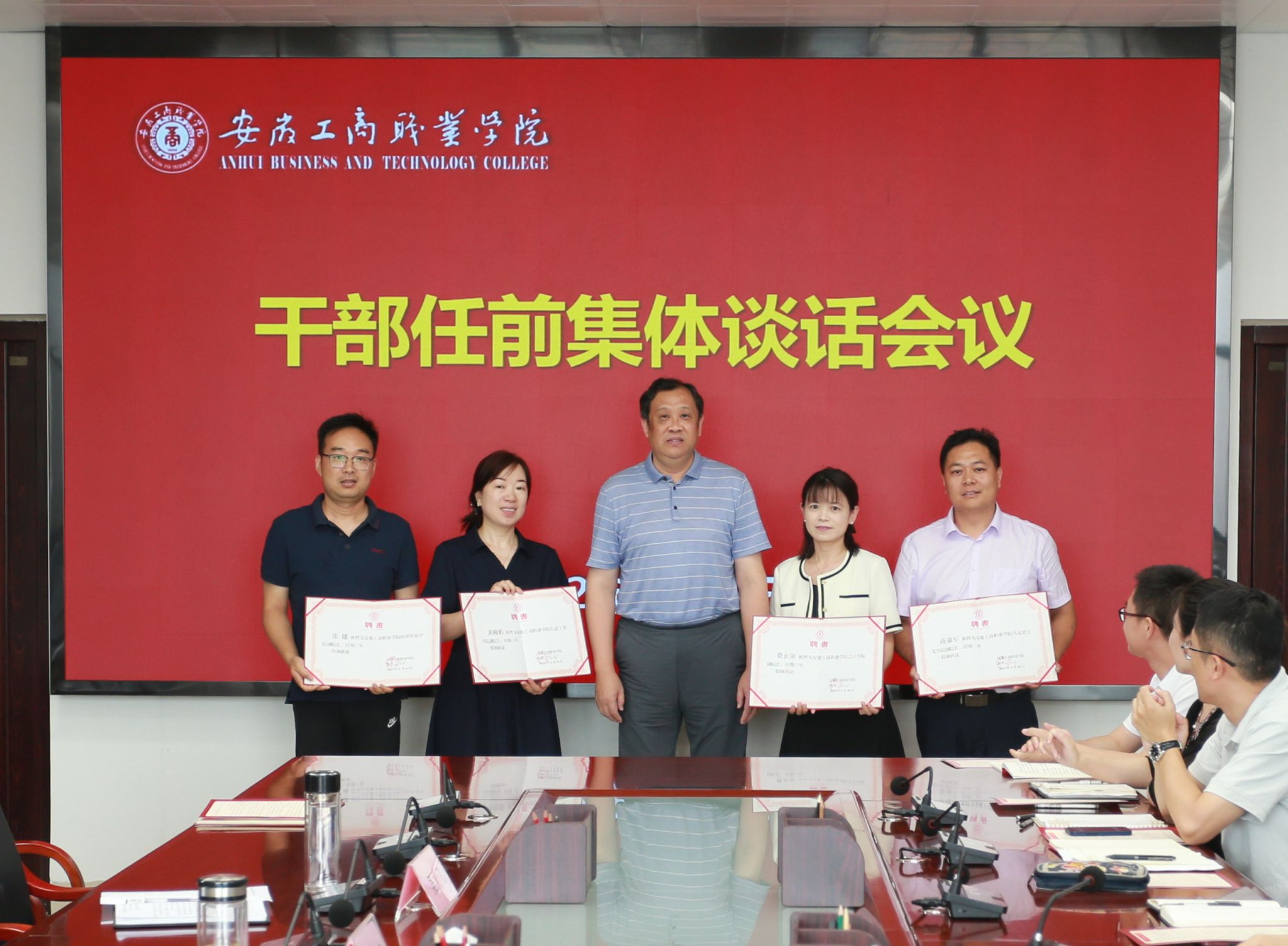 会上,陈行宣读校党委关于干部任职的通知。李雪向新任职的二级学院副院长颁发聘书。