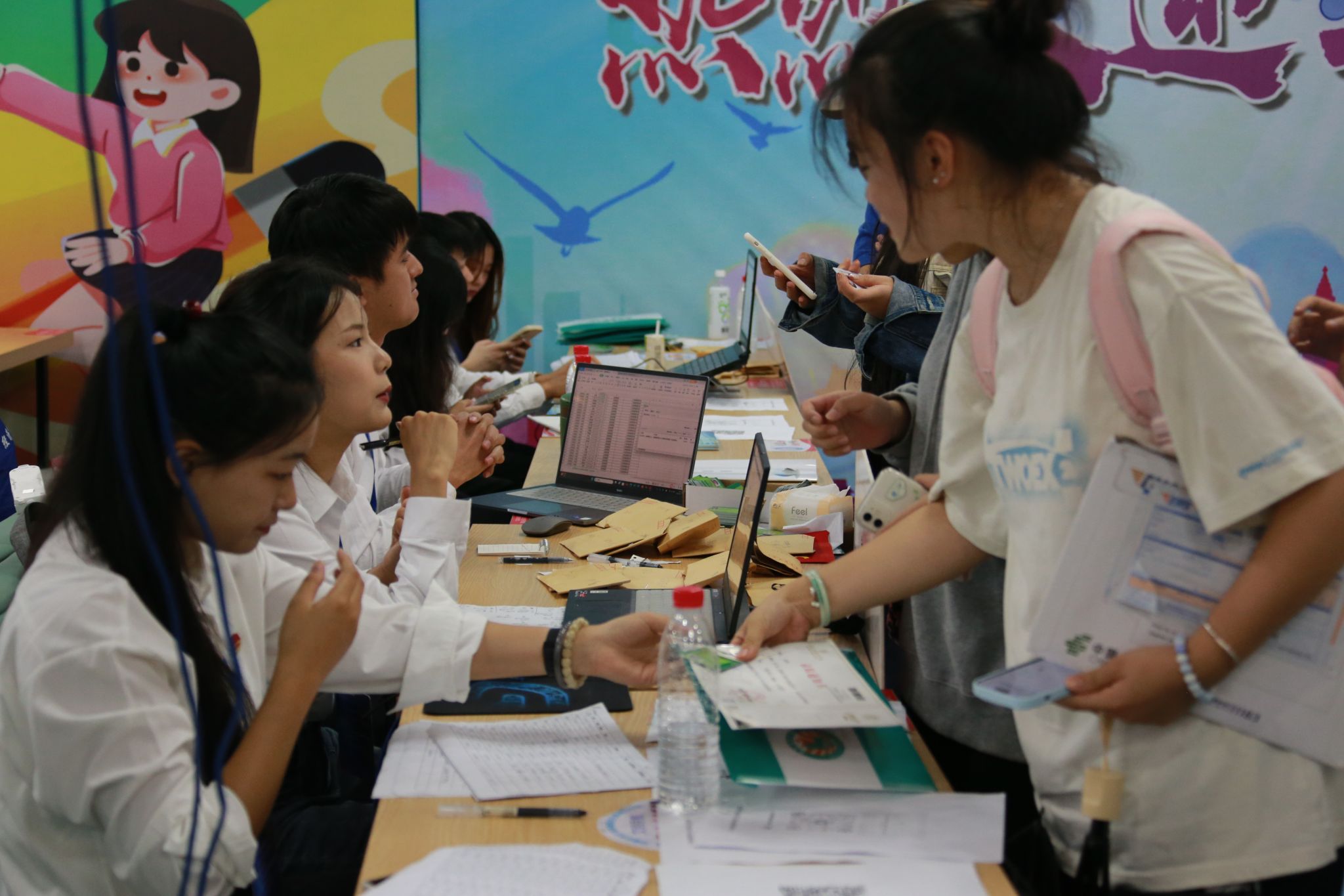创意打卡墙、行李存放处、家长接待站、志愿者服务台、绿色通道……在学生食堂的集中迎新点,各学院精心准备的便捷服务和丰富多彩的迎新活动,帮助同学们消除陌生感,快速融入学校。