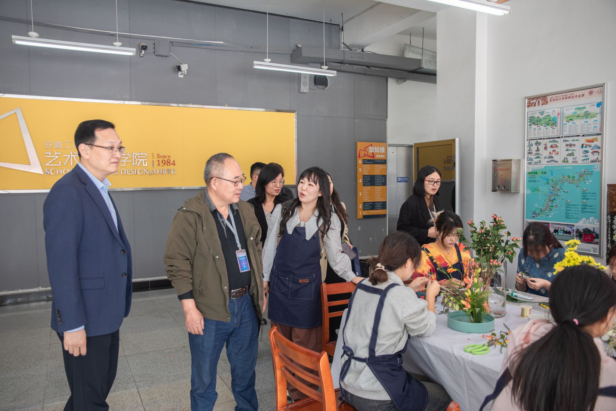 随后专家组一行分别到徽州三雕大师工作室、徽派创新设计工作室、摄影摄像工作室、3D打印工作室、雕塑陶艺工作室、徽州三雕查嵘艺术馆等实地考察验收,并在徽派插花工作室观摩插花劳动教育实践授课现场,专家与学生进行互动并深入体验了劳动教育实践课程。专家组一行对我校基地劳动教育立足于两个国家级资源支撑以及实践场所的规划布局、活动开展、特色育人等方面给予了充分肯定。同时希望,我校徽派技艺劳动教育实践基地在今后的劳动实践教育活动中要充分发挥区域辐射作用,努力营造全社会关心和支持新时代大中小学劳动教育的良好氛围。