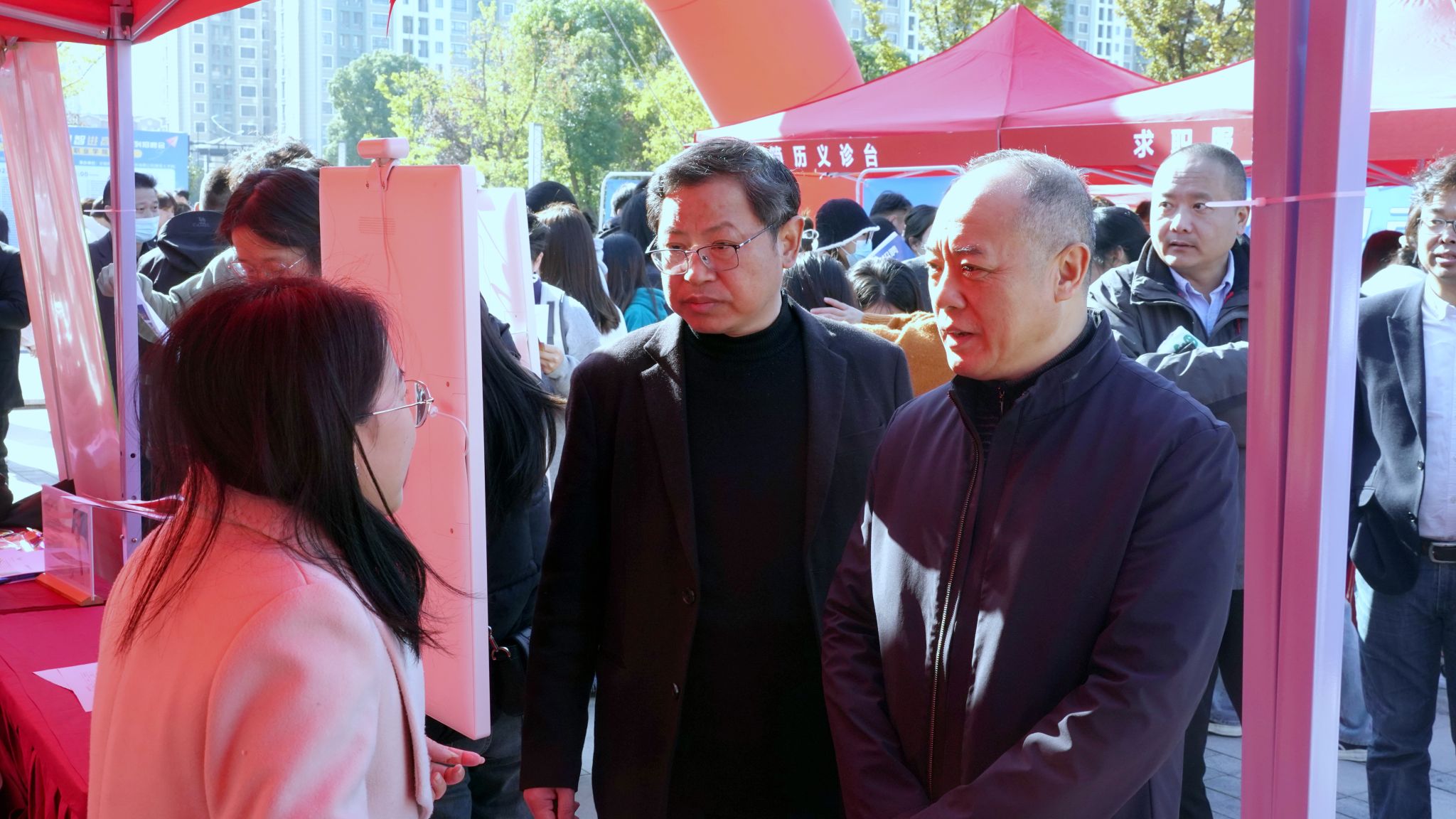 为全面贯彻党的二十大精神,深入落实党中央、国务院关于高校毕业生就业工作的决策部署,促进高校毕业生高质量充分就业,实现供需“双向选择”。11月18日,学校2024届毕业生供需见面会在学校三商广场举行。校领导齐建平、陈行、胡捍东、陈章奇、吴松飞亲临招聘现场并和企业深度沟通交谈。