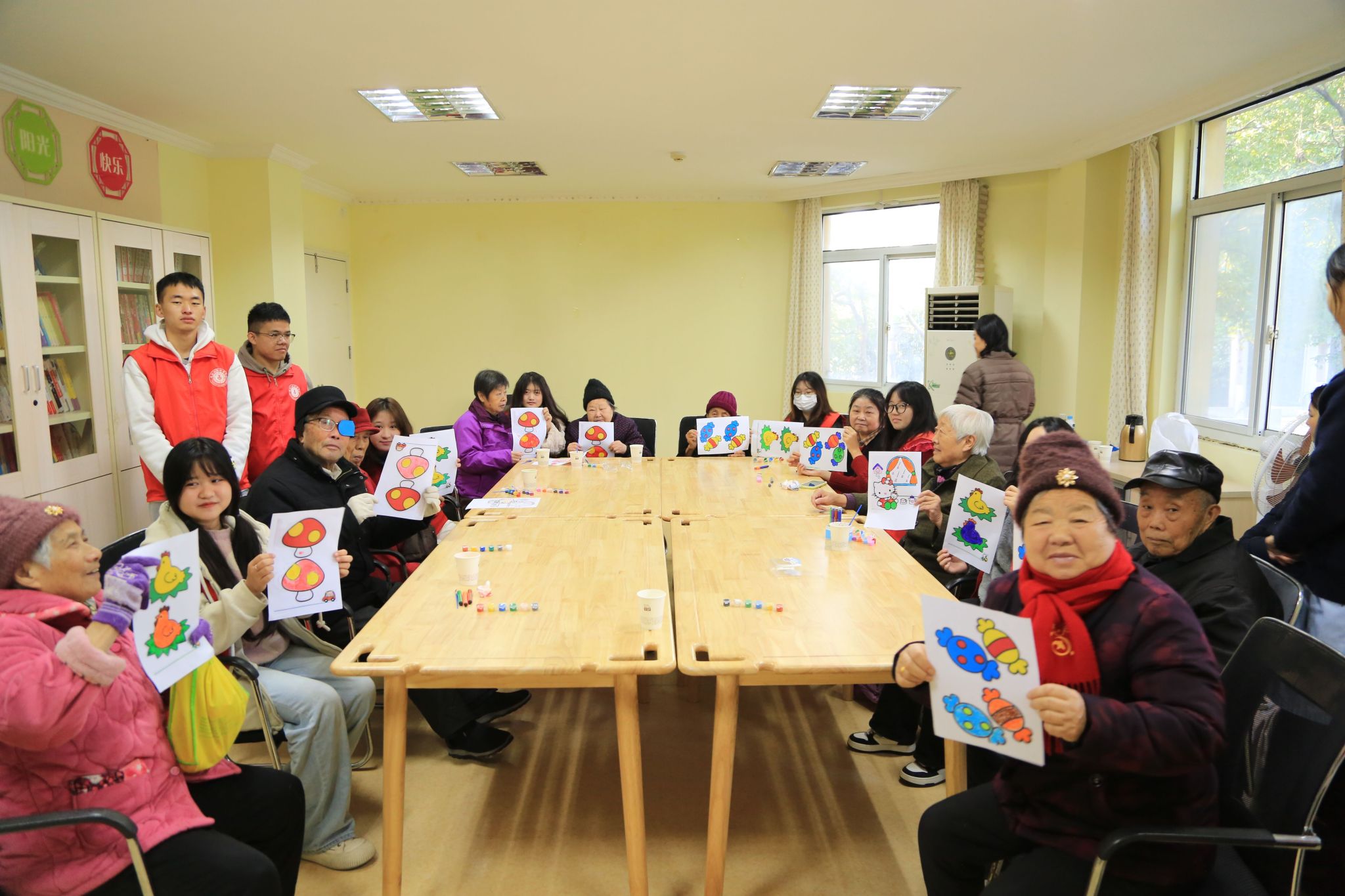 上午9时,志愿者分成两部分,男生志愿者擦窗户、打扫卫生,为老人营造了一个舒适、整洁的环境;女生志愿者陪老人做手工画画,陪老人聊天谈心,认真倾听老人的心声,随后一起为老人表演了精彩的节目。每个环节都得到了老人们积极参与和支持,志愿者的到来给养老院送去了温暖和热闹,每个老人的脸上都洋溢着开心的笑容。志愿者陪伴他们度过了一个温馨快乐的周末,火红的小红帽如同散落的一盏盏明灯,点亮了敬老院。