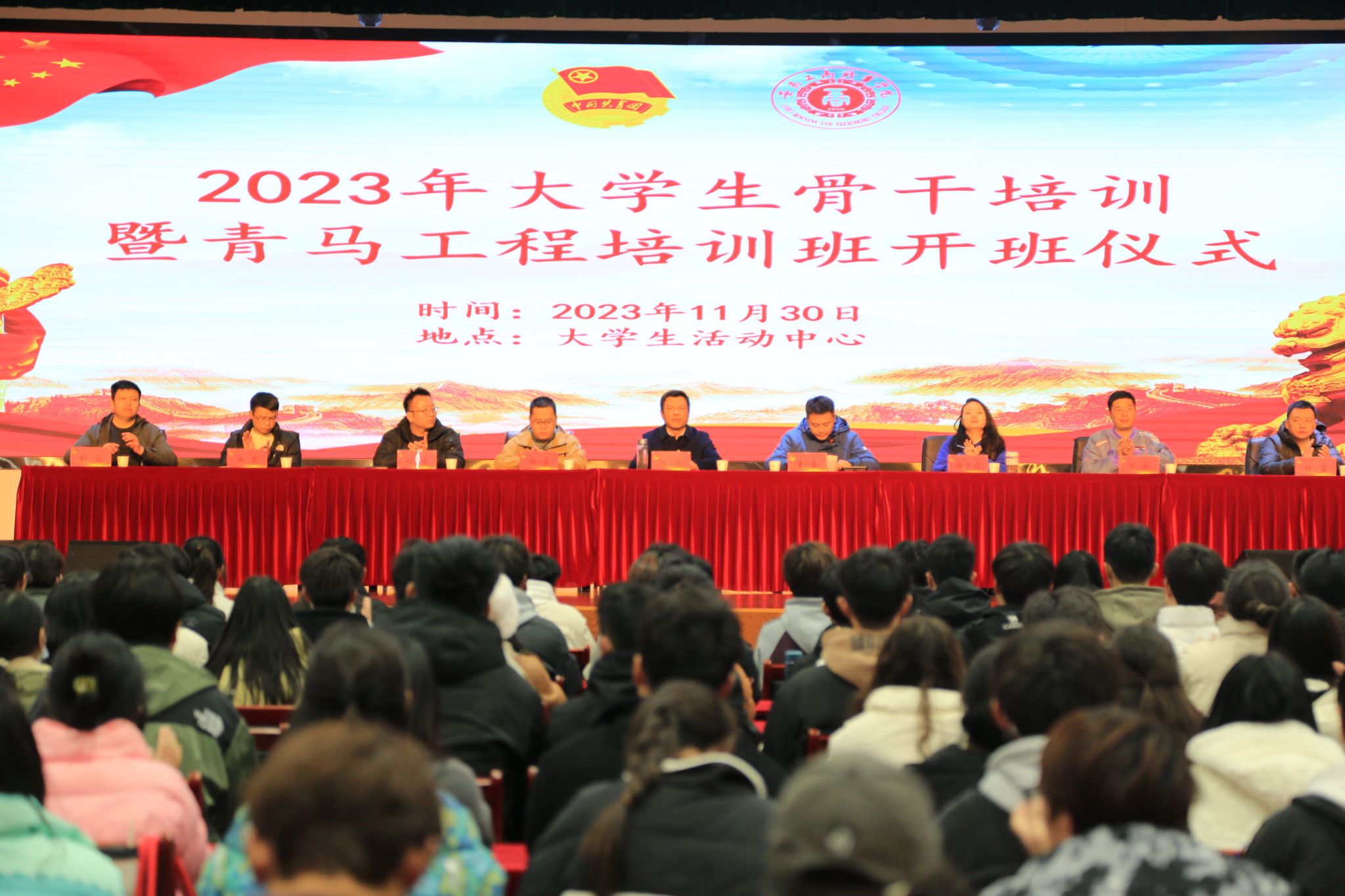 11月30日,学校2023年大学生骨干培训班暨“青马工程”培训班在大学生活动中心开班。校党委委员、党委副书记陈行出席本次活动,各二级学院团总支书记、校团委老师,23级各班班长、团支部书记,校级和各二级学院学生组织主要干部、校级社团负责人,共计300多人参加开班仪式。本次开班仪式由校团委副书记童乐主持。