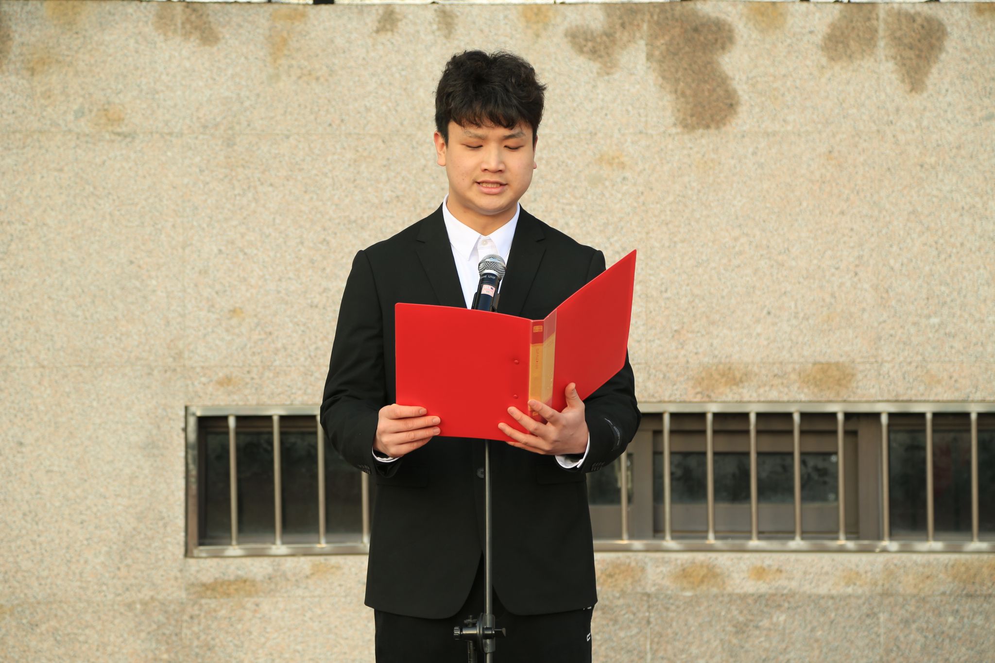 管理学院学生代表刘慎楠作了题为《国旗下的青春誓言》的演讲,他号召广大同学珍惜时光,不负韶华,用信念为青春添上亮丽的颜色,用梦想为青春擦亮成长的底色,为实现中华民族伟大复兴的中国梦而不懈奋斗,让青春在国旗下绽放出最绚丽的光彩。