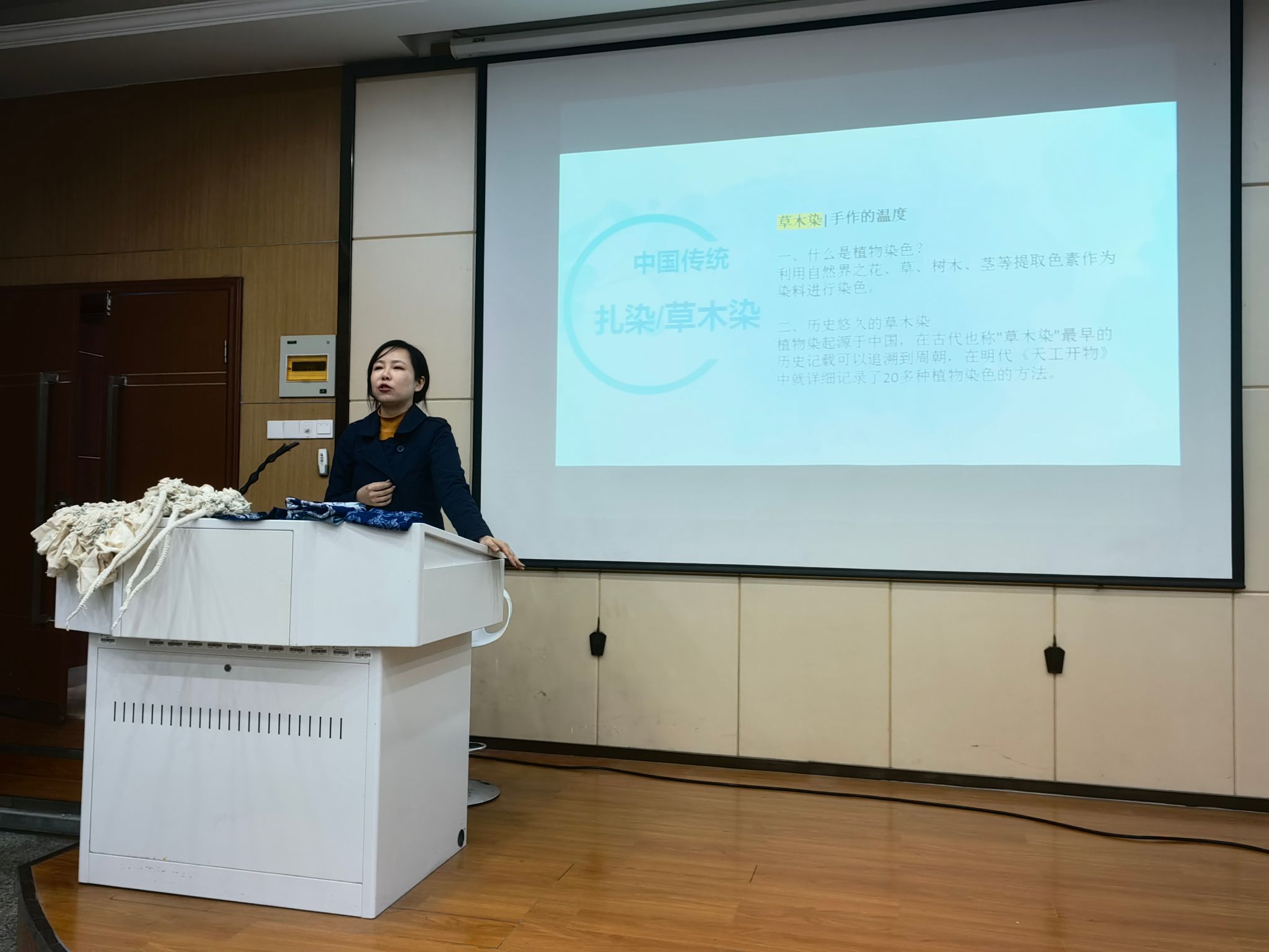 在闻道楼第一学术报告厅,艺术设计学院产品艺术教研室的韦鸾鸾老师向女职工们介绍了非遗扎染的历史、特点和制作过程,展示了扎染的精湛技艺,吸引了在场的员工们。随后,女职工们积极参与了扎染作品的制作,深刻感受到了扎染艺术的魅力。