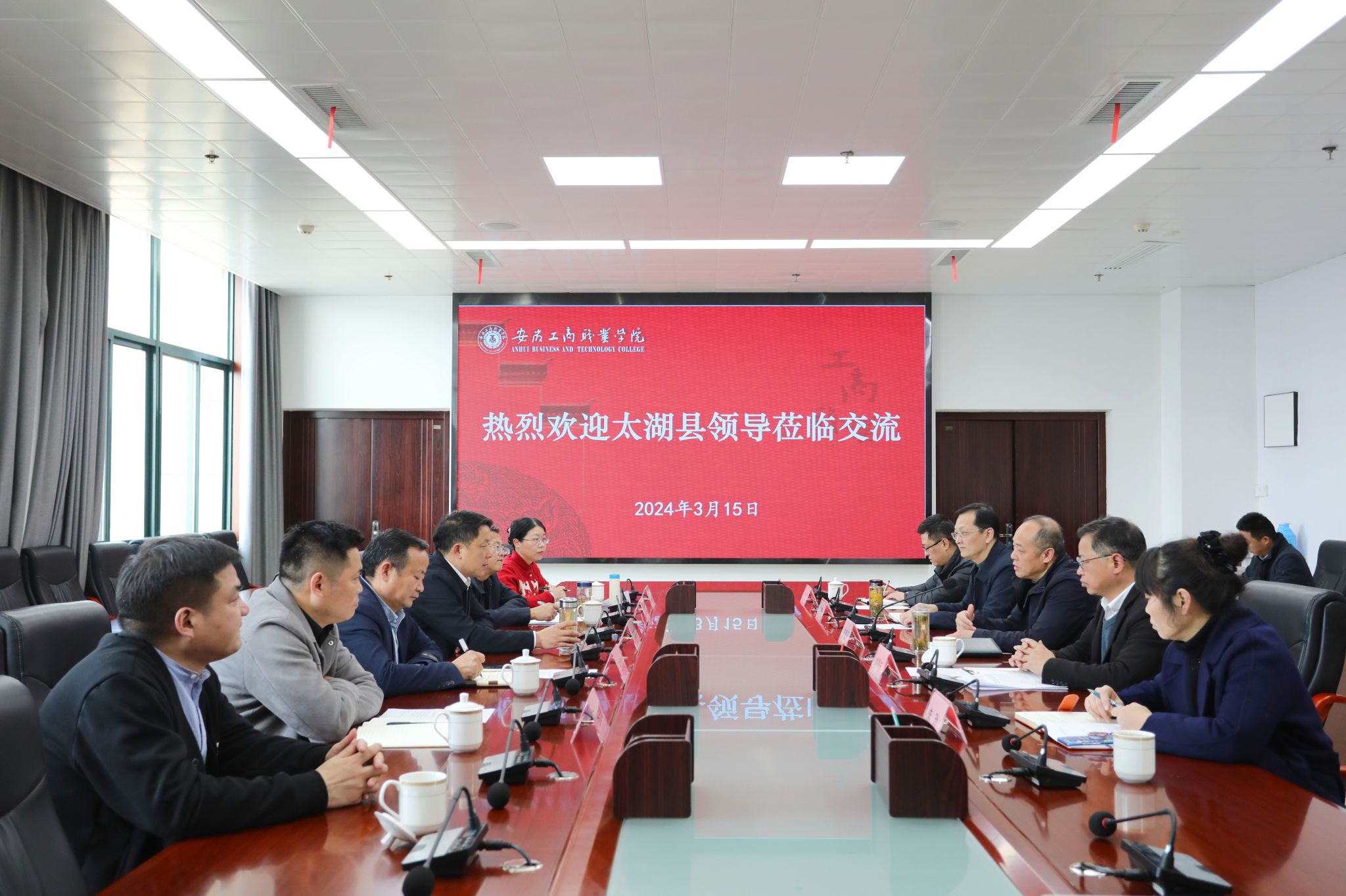 会上,双方围绕职业教育发展,就太湖县域主导产业和学校专业匹配情况、生源情况、太湖职业技术学校专业基础等问题进行了深入交流。双方一致表示,要积极响应国家关于职业教育工作的决策部署,进一步加强校地互通、校校合作,结合实际,认真谋划好、定位好高职专业学院建设,助推职业教育发展,助力乡村振兴战略,服务太湖经济社会发展。