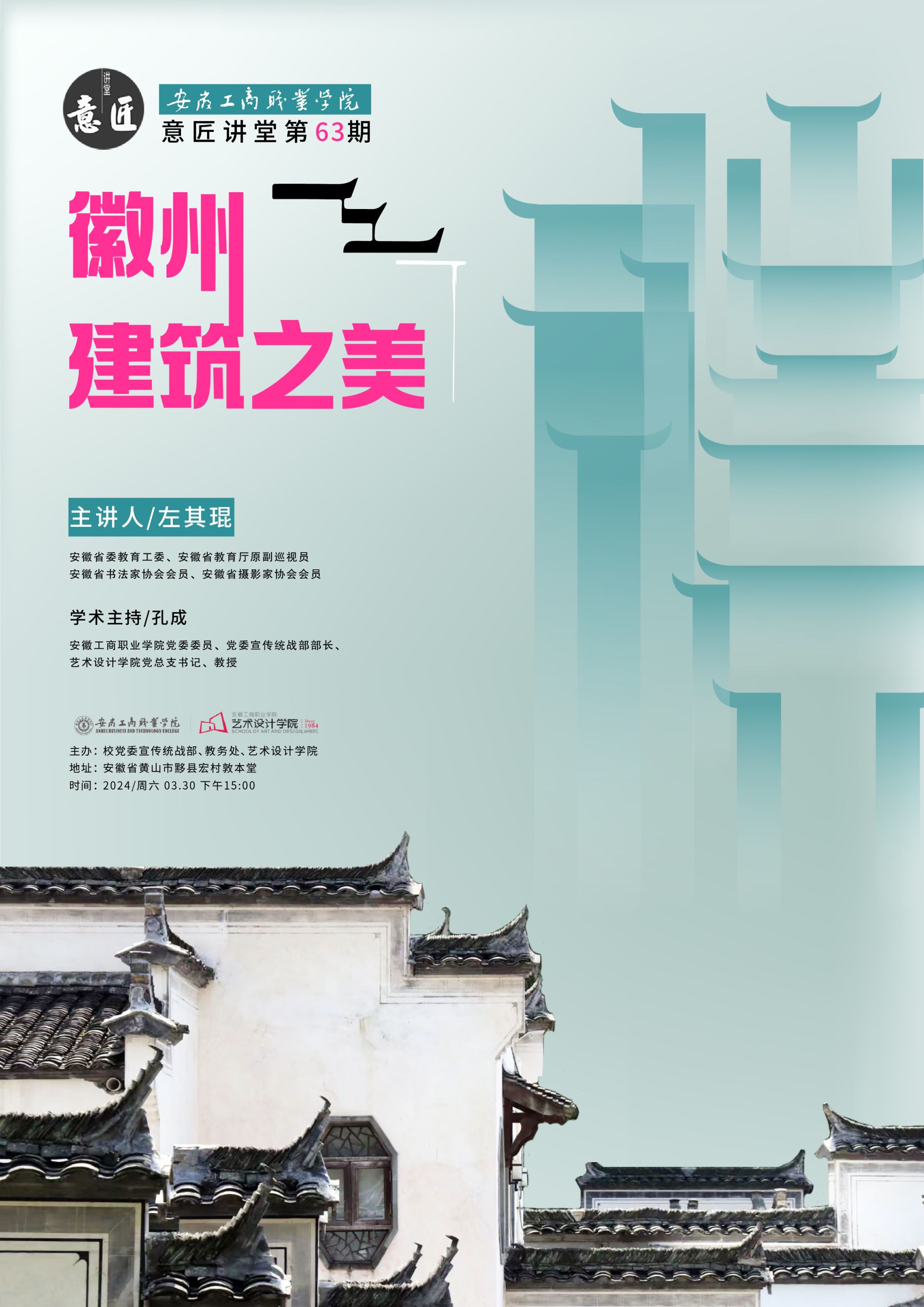 3月30日,在安徽黟县宏村敦本堂,一场别开生面的学术盛宴吸引了广泛关注。安徽工商职业学院第63期意匠讲堂,以“徽州建筑之美”为主题,举办了一堂别具一格的沉浸式艺术思政课。本次课程荣幸邀请到了享誉安徽的文化学者,同时也是省委教育工委、省教育厅原副巡视员、安徽省书法协会与摄影家协会杰出会员,左其琨先生,作为主讲嘉宾,同在场的70余位艺术设计学院的师生展开了一场关于徽州建筑之美的深度探讨。此次活动由校党委委员、党委宣传统战部部长、艺术设计学院党总支书记孔成担任学术主持。