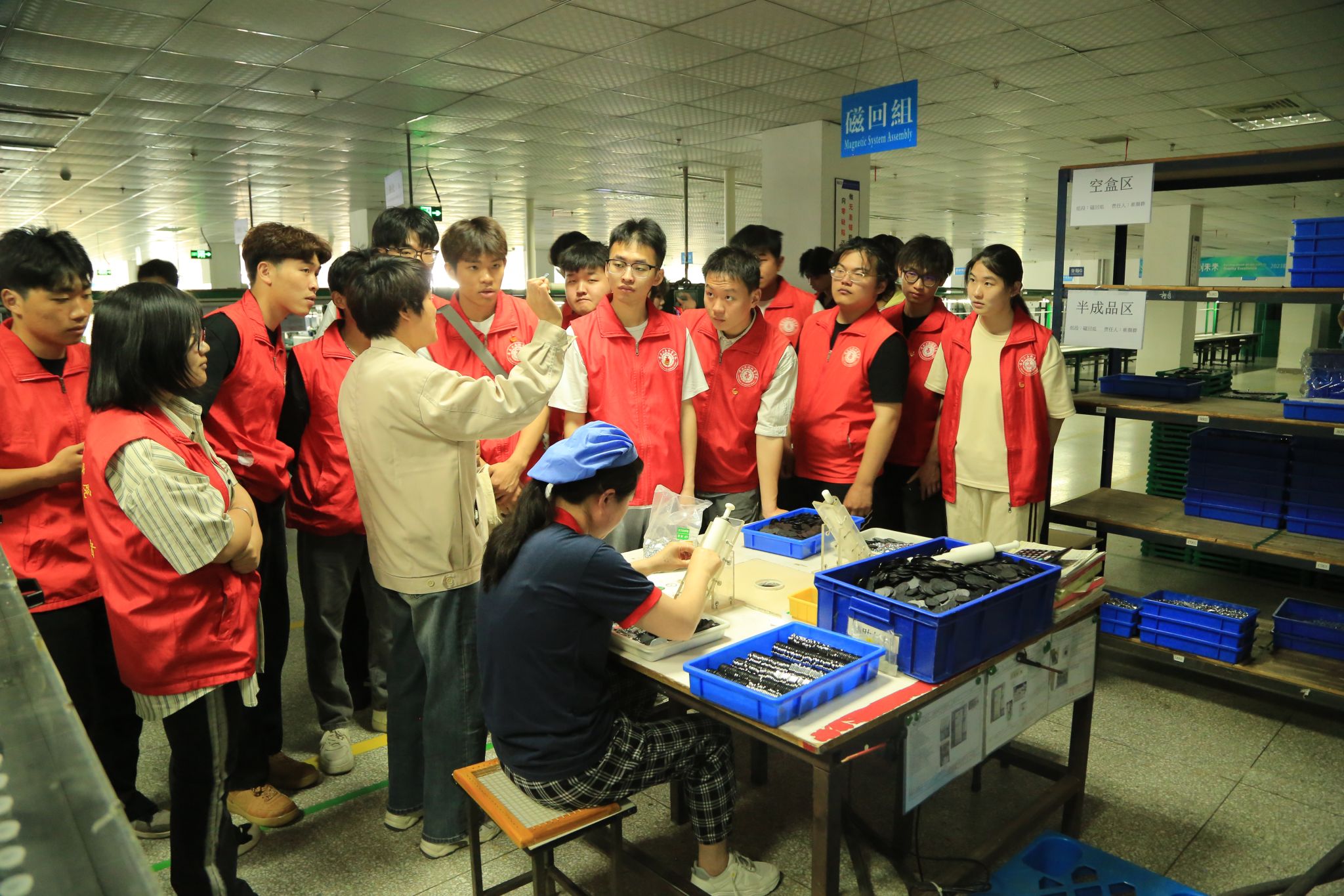 5月10日上午,校外实践的舞台转移到了合肥宏立电子有限公司。师生们近距离感受现代企业的运营,从座谈交流到实地参观,再到动手操作,每一步都让学生深刻体会到了工匠精神的内涵,坚定了他们成为新时代奋斗者的决心。