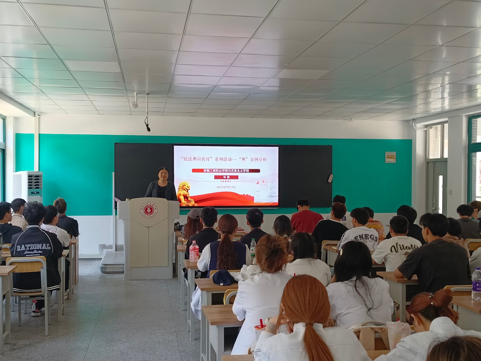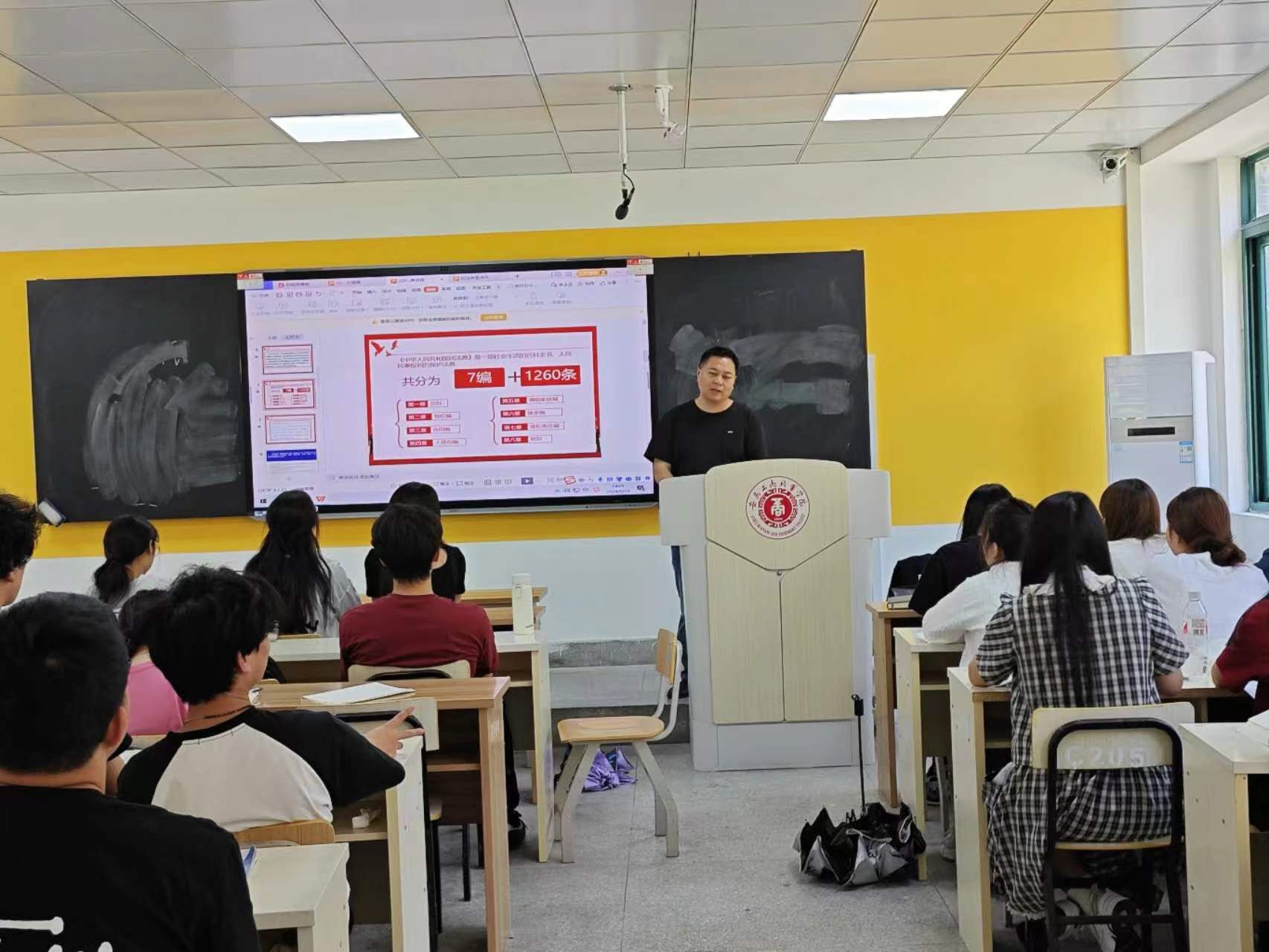 “德法”教研室主任韦静为同学们做了《民法典宣传月系列活动之“典”案例分析》的专场讲座,讲座中一幕幕民法典相关典型案例,提升了专题讲座的针对性、拓展了同学的法治视野、增强了学生的法治意识。