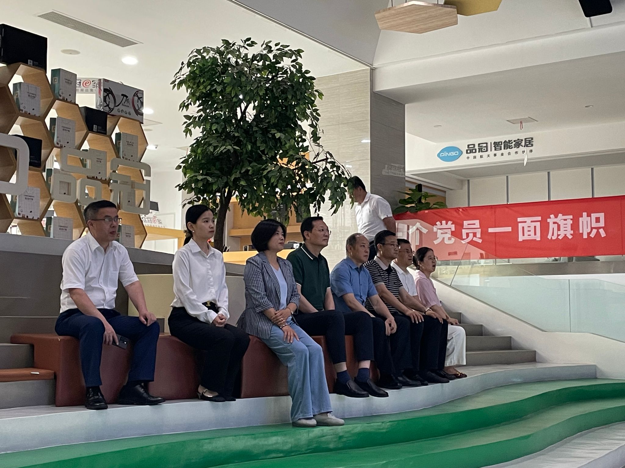 齐建平一行首先在荣事达集团副总裁、人力资源系统总监罗松等陪同下参观了荣事达双创展厅、国家级双创示范基地和双创大学、智能家居检验检测实验室、品冠E家科技住宅展厅、智慧文旅舱项目展场等。参观途中,还看望了我校正在荣事达集团开展企业挂职锻炼的教师支凤宁。
