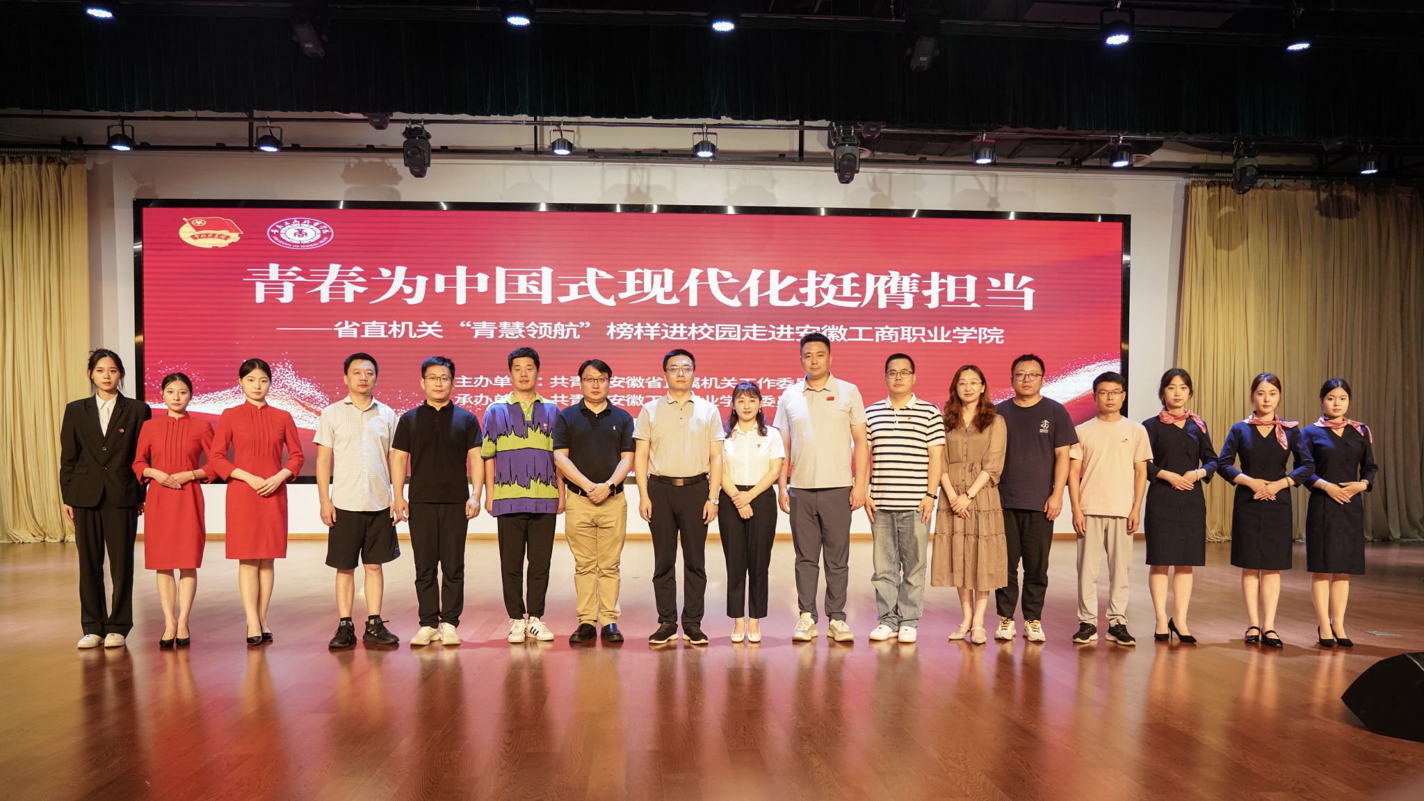 6月21日,由共青团安徽省属机关工作委员会主办、校团委承办的“‘青慧领航’榜样进校园宣讲活动”在我校大学生活动中心举行。省直团工委书记盛志伟和校党委副书记陈行出席了此次活动,校团委委员及600余名优秀学生代表一同聆听了这场精彩的“大思政课”。