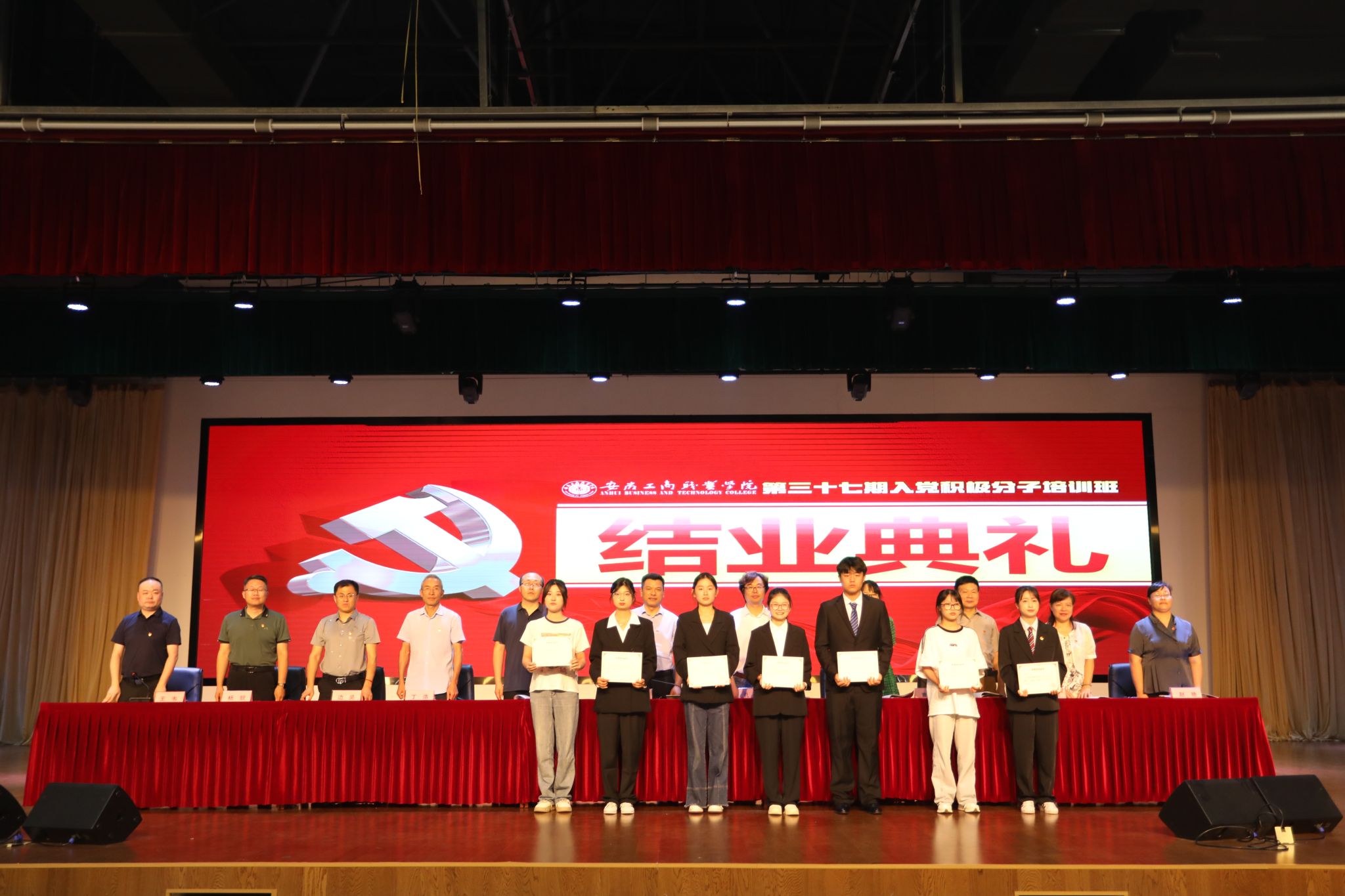 6月26日,我校在大学生活动中心举行第三十七期入党积极分子培训班结业典礼。校党委副书记、党校校长陈行出席结业典礼,相关职能部门负责人,各二级学院党总支书记、副书记,学生党支部书记,各分党校班主任及培训班全体学员参加典礼,典礼由组织人事处副处长王韦主持。