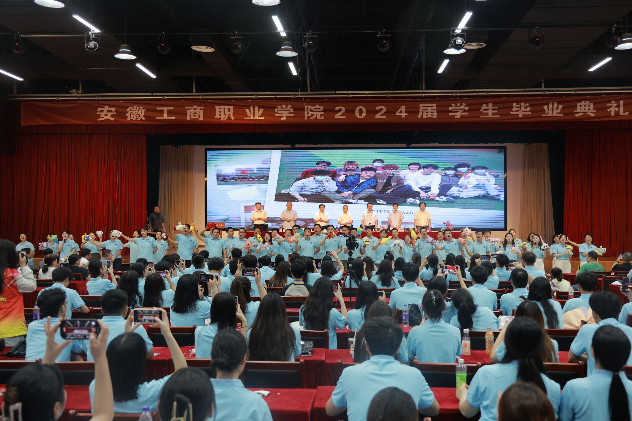 毕业典礼在全体辅导员合唱的歌曲《再见》中落下帷幕。 (文/鲍绍武 审/朱玲)