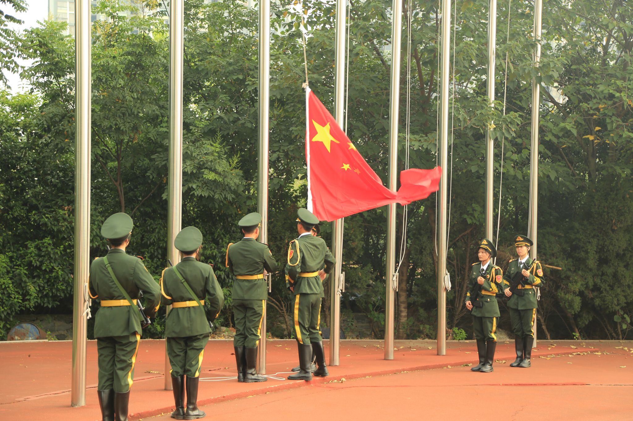清晨7时20分,国旗护卫队的成员们踏着整齐的步伐,护送五星红旗缓缓走向升旗台,他们的身影在朝阳的映照下显得尤为英姿勃发。随后,《义勇军进行曲》响起,全体师生肃立,面向国旗致礼,并齐声高唱国歌。在晨光中飘扬的五星红旗,激发了大家炽热的爱国情感。