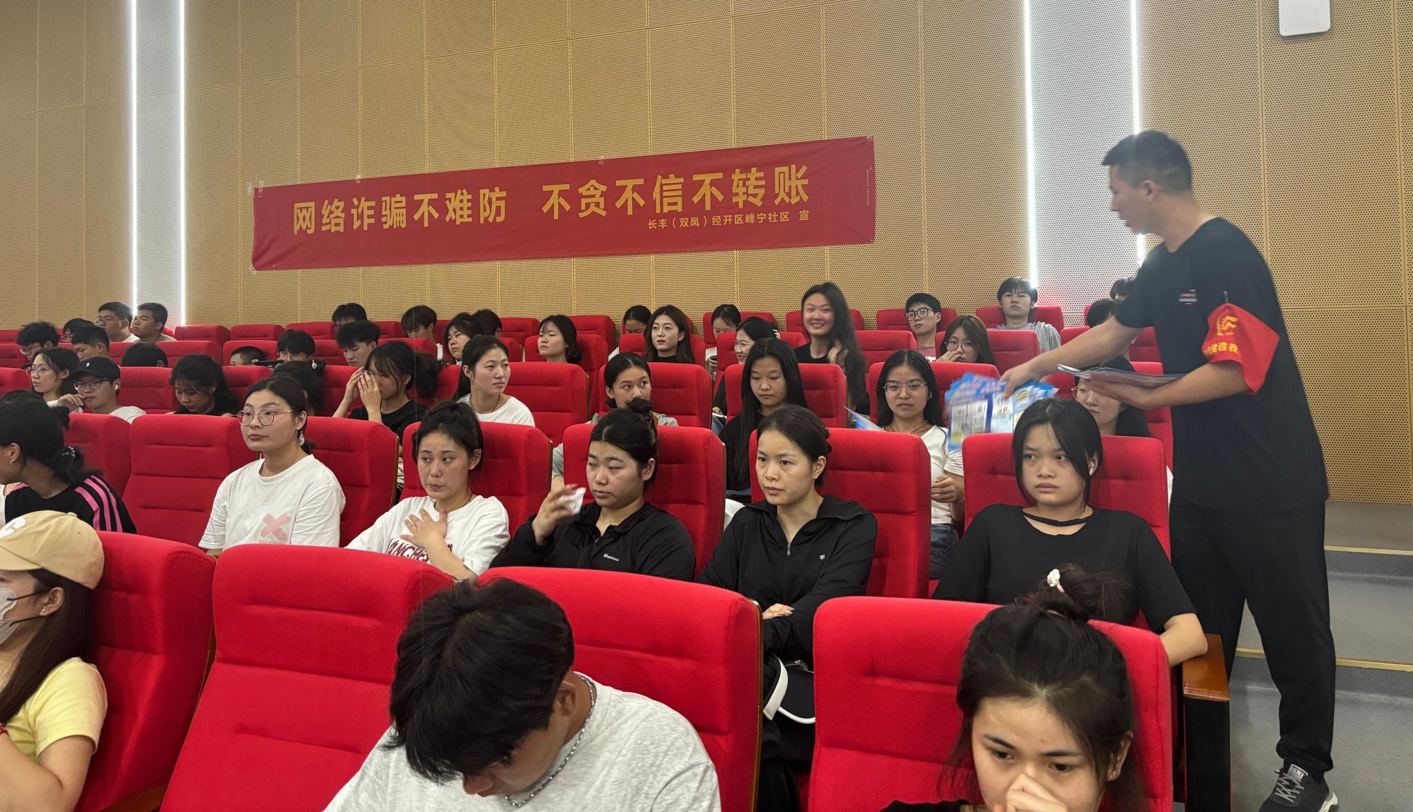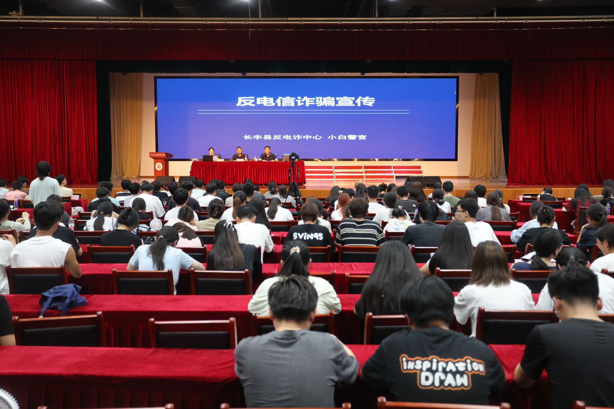 电信网络诈骗手法不断翻新,防范工作尤为重要。为进一步加强反电诈安全教育,切实提高学生对各种电诈手法的识别能力和防范意识,增强自我保护能力。9月5日下午,我校邀请长丰县公安局反电诈中心民警在大学生活动中心开展了开学安全第一课暨反电诈安全讲座,峰宁社区反诈宣传工作人员、辅导员及学生代表近700人参加了本次讲座。