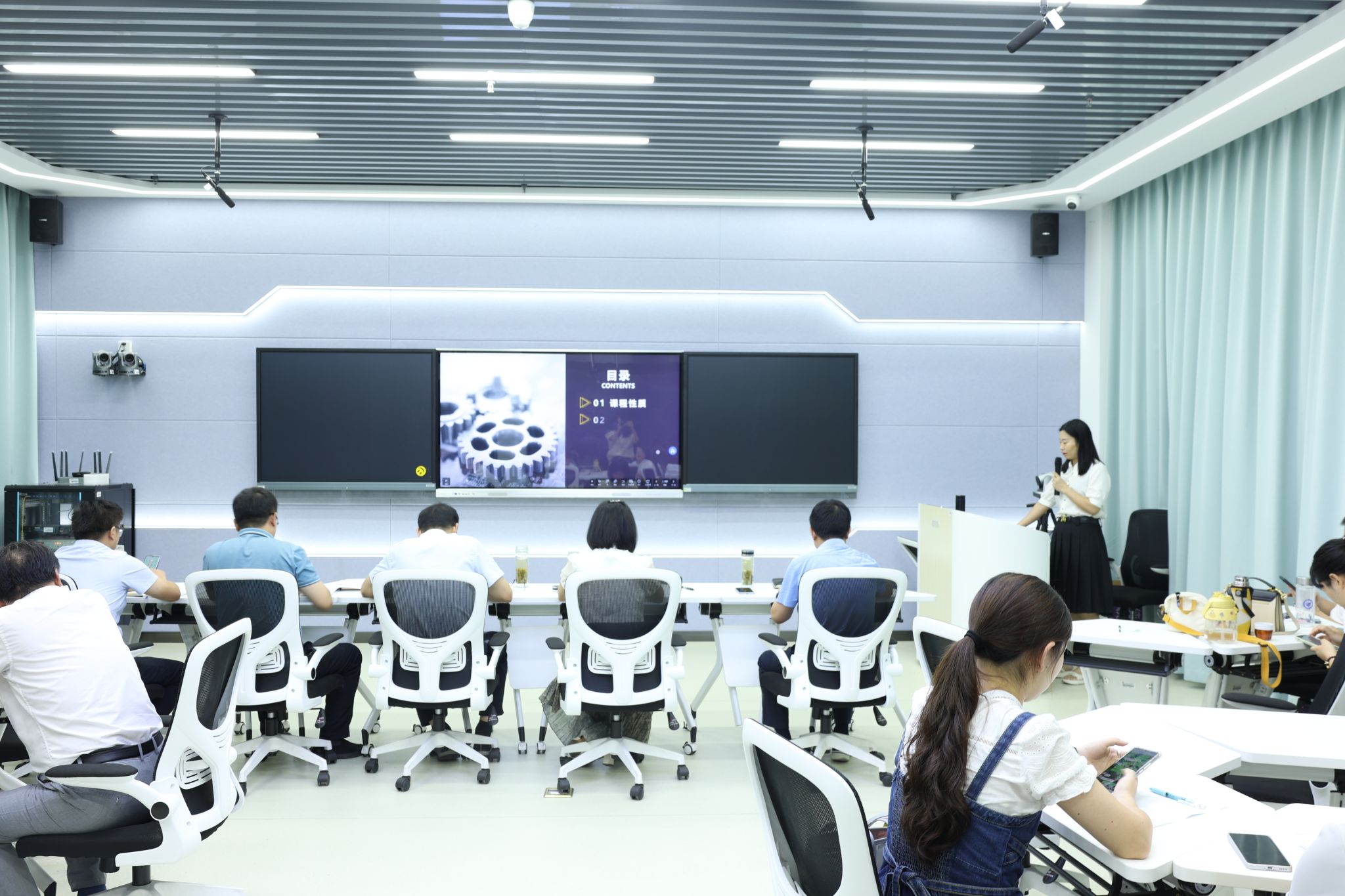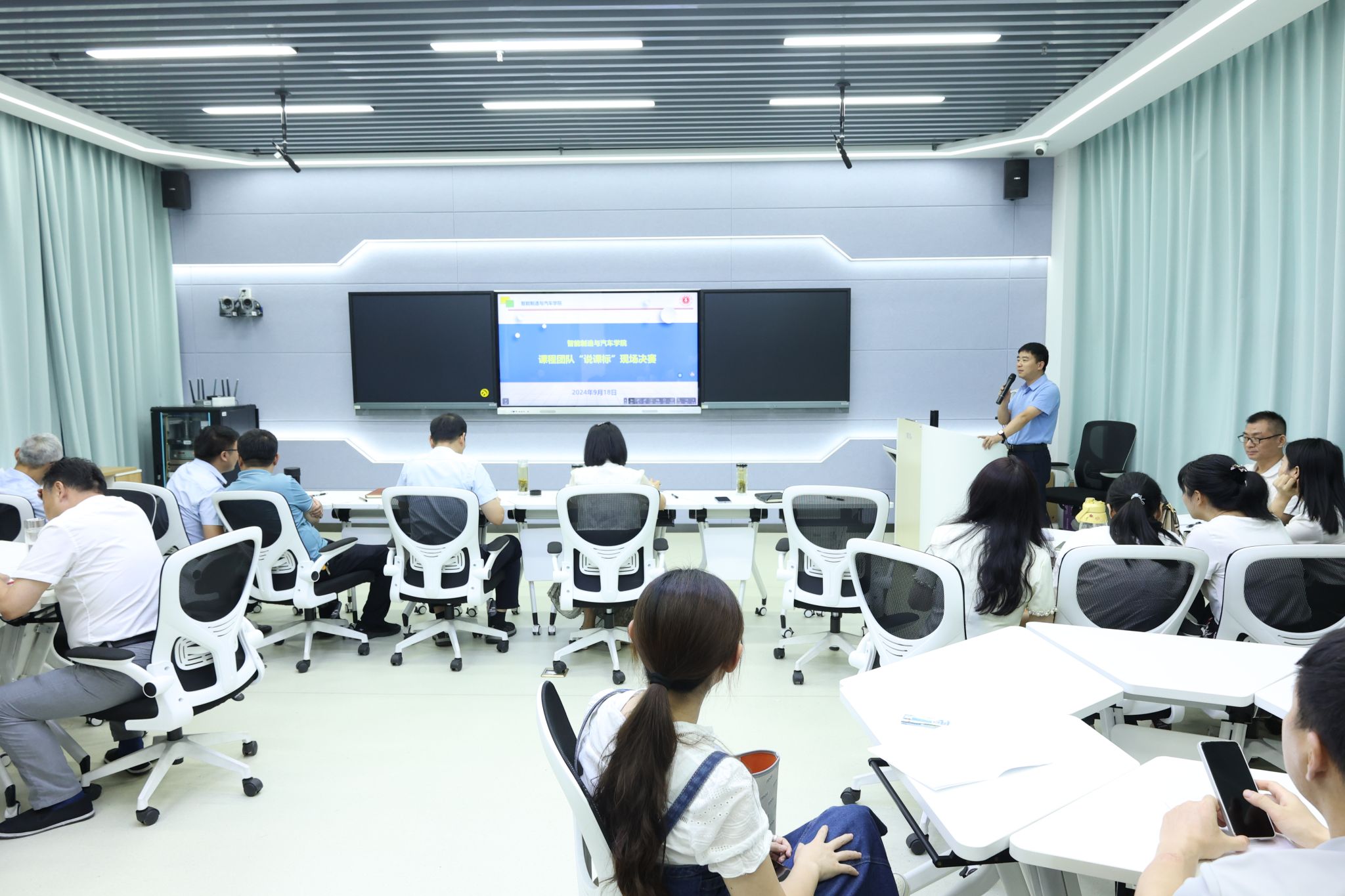 智能制造与汽车学院课程团队“说课标”活动旨在进一步推动课程标准的制定与落实,深化教学改革,提升教学质量。活动分为“专家网评”和现场“说课标”两个环节,参赛课程34门,其中网评前30%队伍进入现场决赛。进入现场的9位课程负责人精心准备,详细阐述课程标准的课程思政元素与融入、课程定位和目标、教学设计与内容、教学方法与手段以及考核评价等方面的内容。参赛教师们不仅展示了扎实的专业知识,还充分体现了对教学改革的深入理解和实践能力。