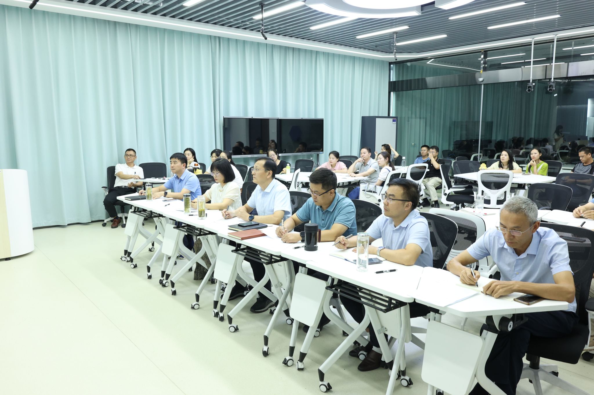 根据学院印发的《关于开展智能制造与汽车学院课程标准制(修)订和评比的通知》要求,2024年9月18日下午,智能制造与汽车学院在综合楼仿真教学与资源创作实训室成功举办了课程团队“说课标”现场决赛。党委委员、副院长陈章奇,教务处处长张震,教务处副处长郭雪峰和余国锋以及智能制造与汽车学院院长姚庆锋和智能制造与汽车学院党总支书记丁浩等领导莅临现场,担任比赛专家评委,各课程团队全体成员参加了本次活动。