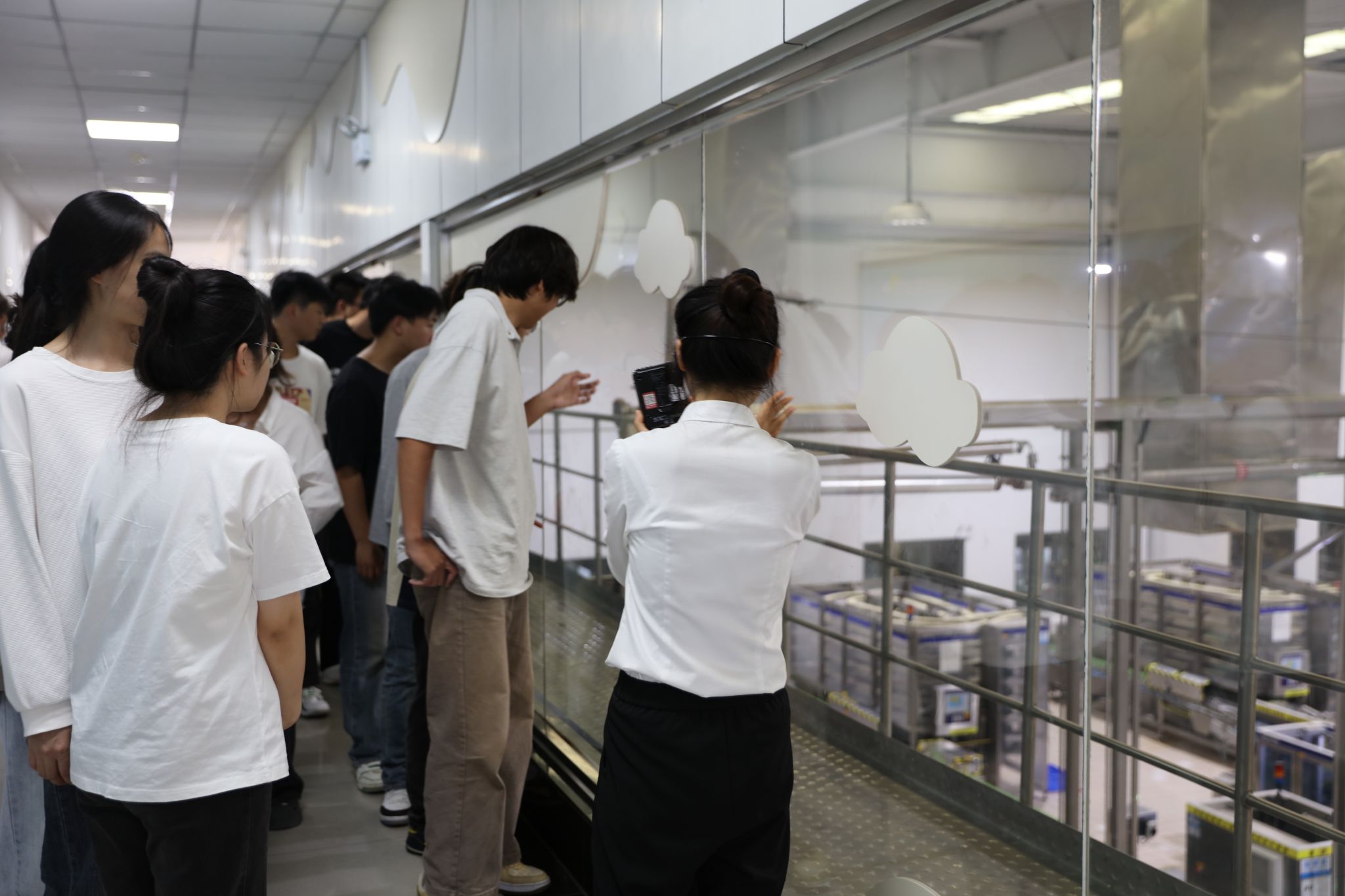 随后,在工作人员的带领下,有序进入现代化的生产线参观区域。一条条自动化、智能化的生产线映入眼帘,从原料检验、生产加工到包装出库,每一步都精准高效,却又不失对细节的极致追求。学生们亲眼见证了从液态奶到各类乳制品的诞生过程,深刻感受到了劳动精神在现代化工业生产中的传承与发扬。他们纷纷表示,这种直观体验比书本上的知识更加直击人心,对“崇尚劳动、热爱劳动、辛勤劳动、诚实劳动”的劳动精神有了更加深刻的理解。