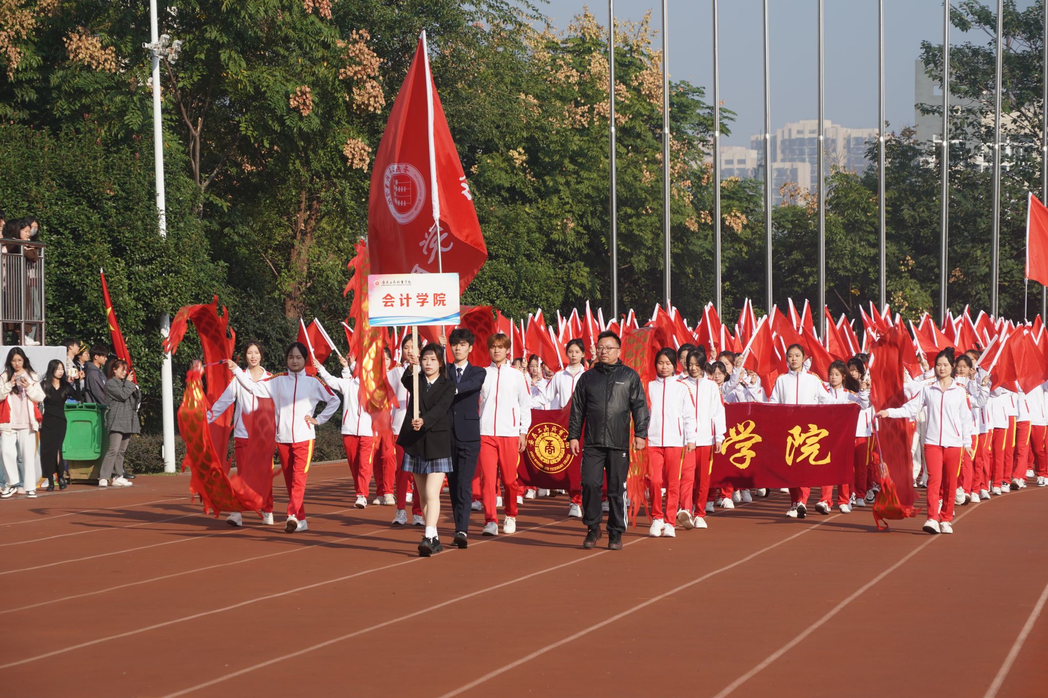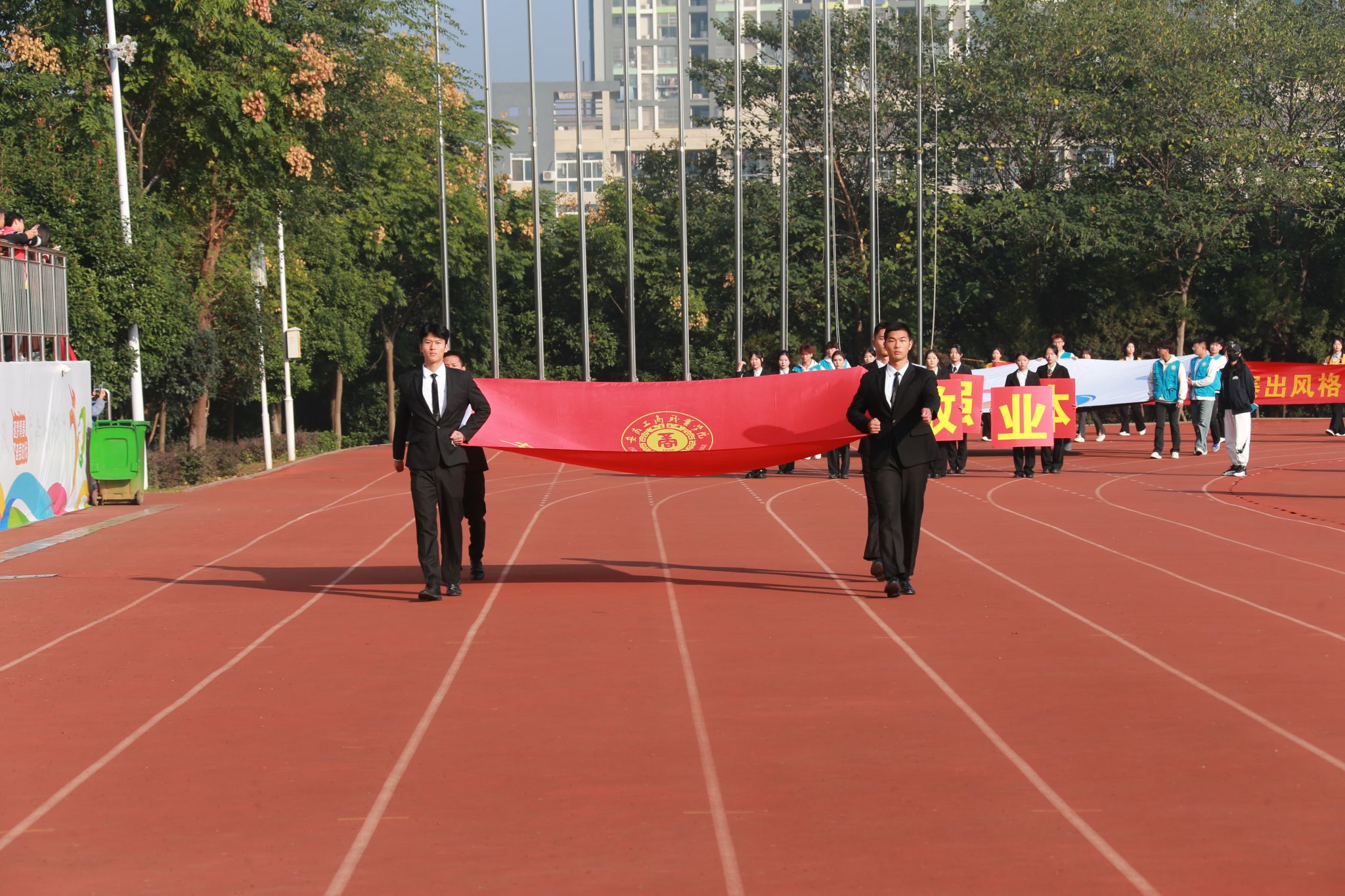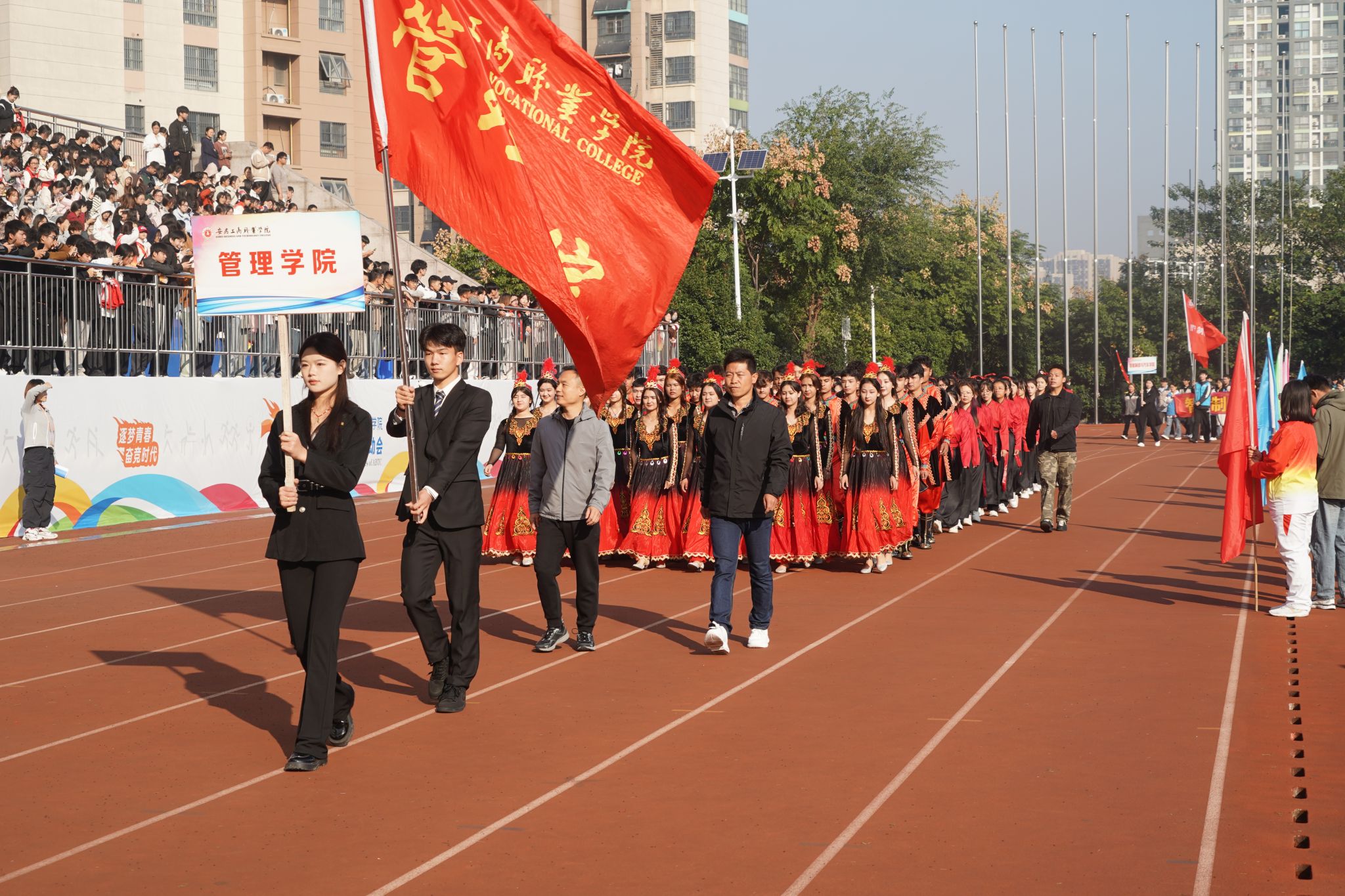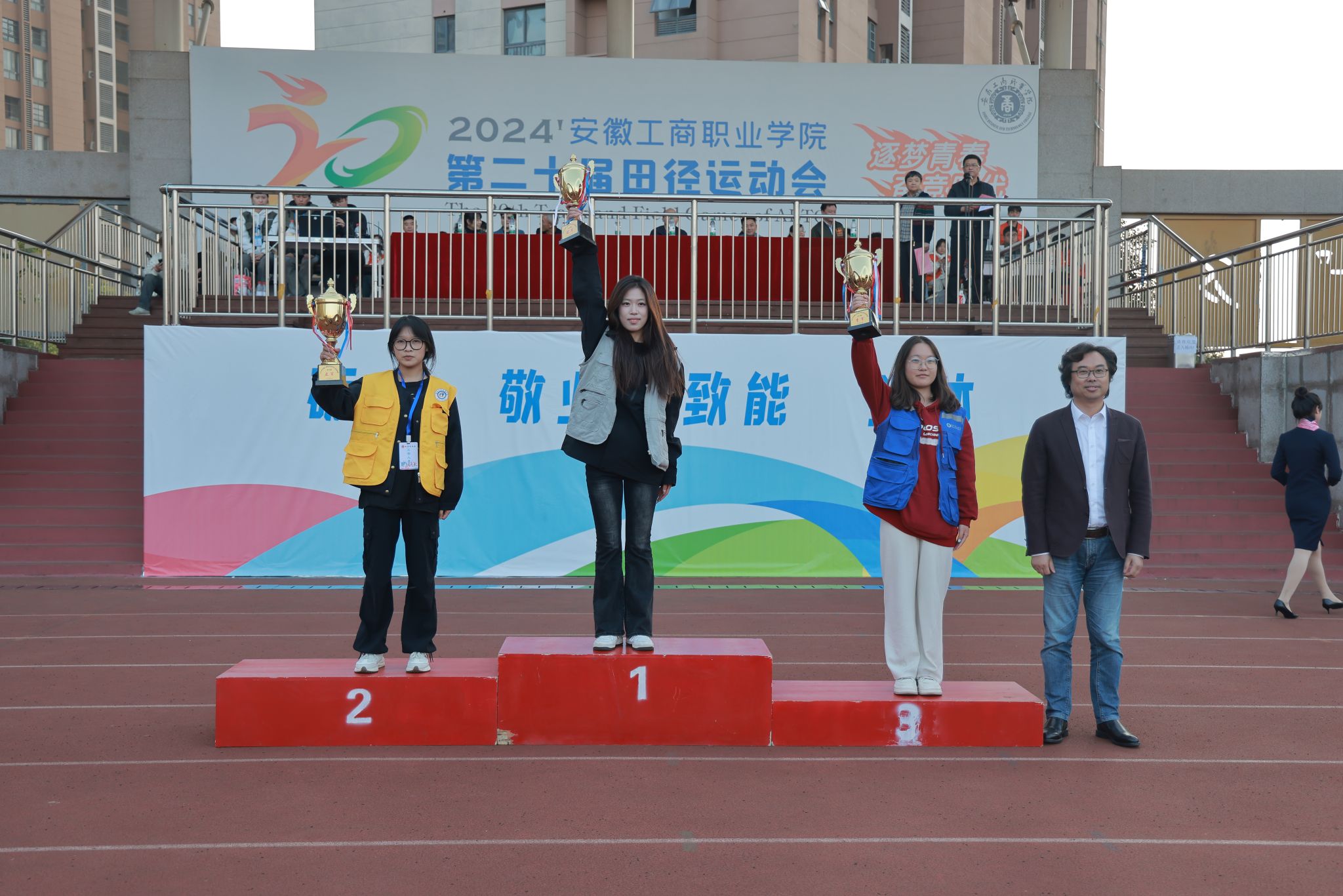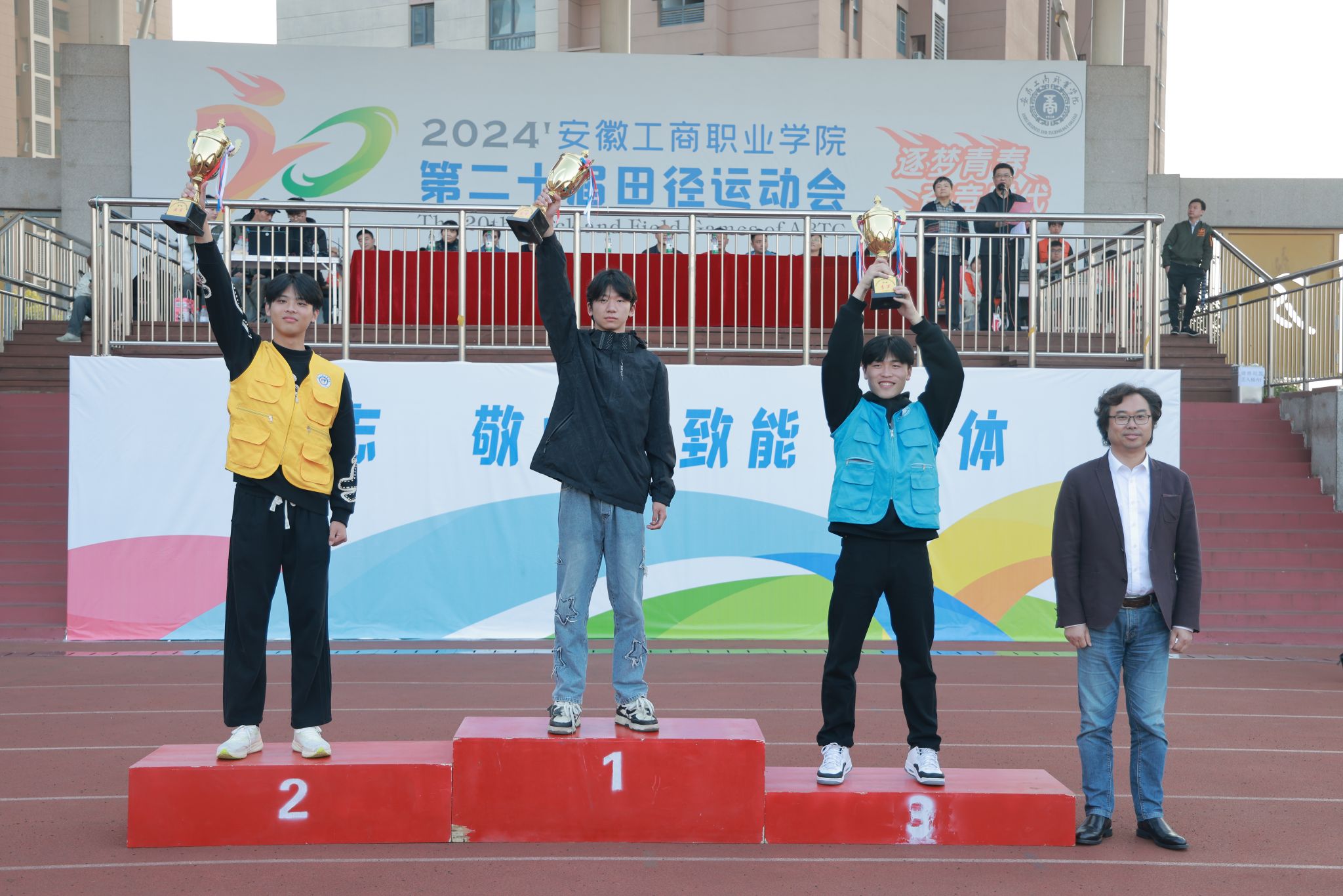 10月24日,学院第二十届田径运动会闭幕式在田径运动场举行。学院党政班子陈行、胡捍东、吴松飞、孔成、朱小龙莅临现场。闭幕式由运动会总裁判长、教务处长张震主持。副总裁判长刘守旺公布本次比赛中各团体的成绩以及刷新纪录3名运动员名单与成绩智能制造与汽车学院、管理学院和艺术设计学院获得优秀组织奖。随后,在全场热烈掌声中,学院领导为获奖团体和运动员颁发奖项。
