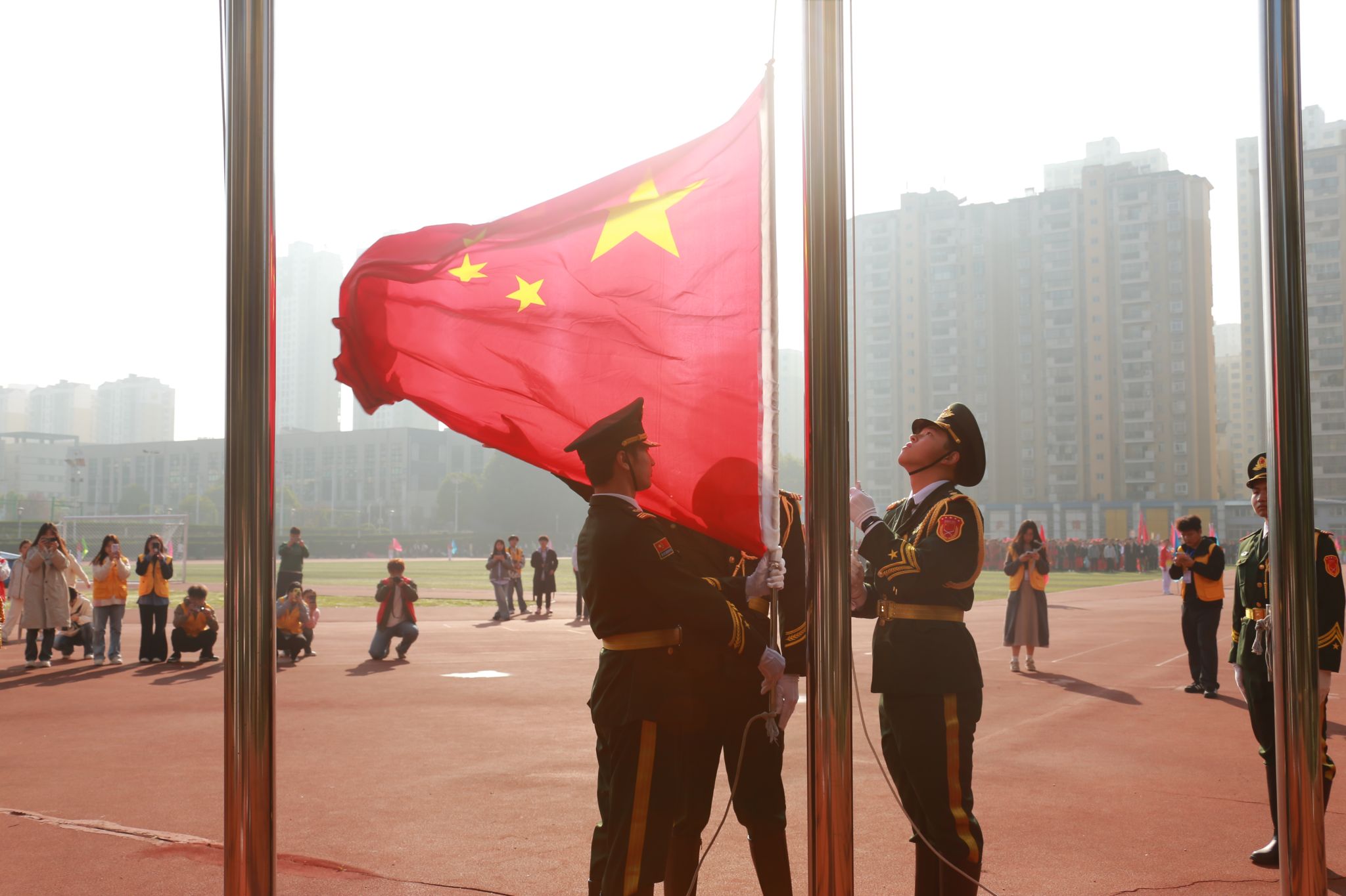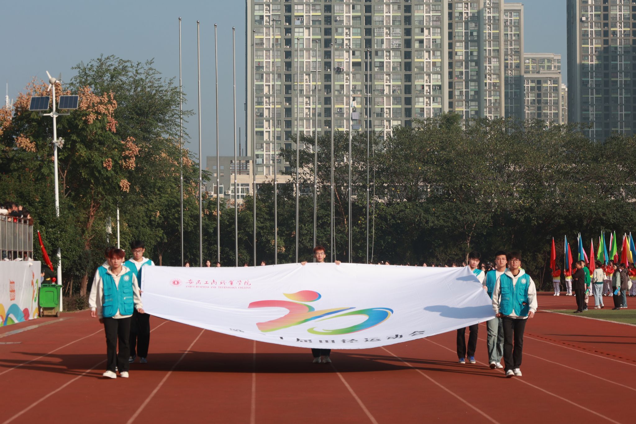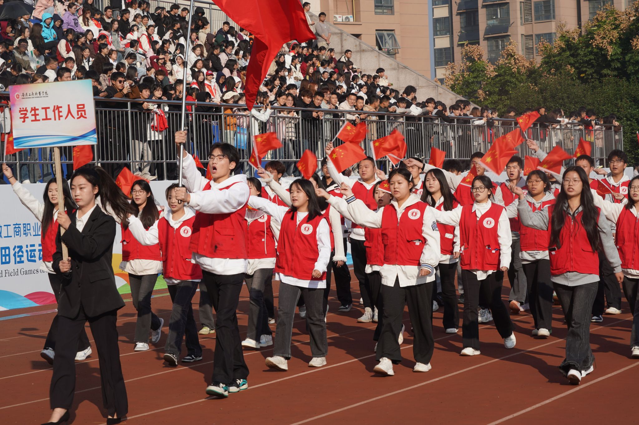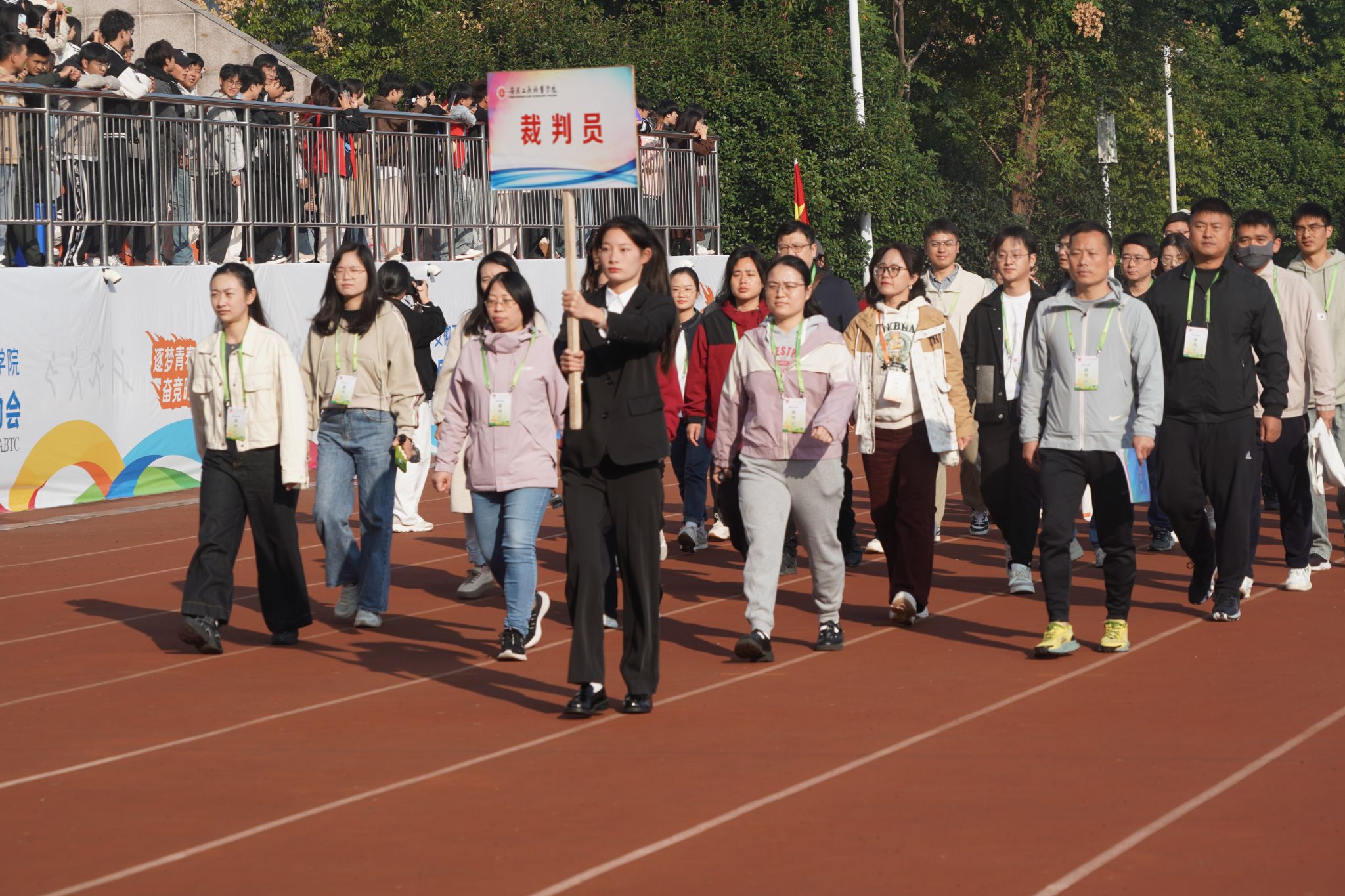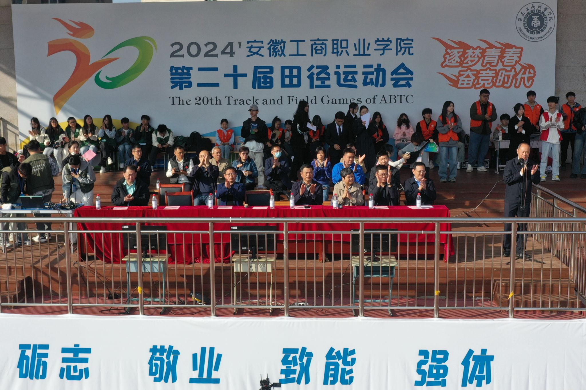 10月23日,学院第二十届田径运动会拉开帷幕。学院党政领导班子齐建平、陈行、胡捍东、陈章奇、吴松飞、朱小龙,各院部处室负责人、全体运动员、裁判员、领队和各学院师生代表参加开幕式。校党委书记齐建平宣布第二十届田径运动会开幕。