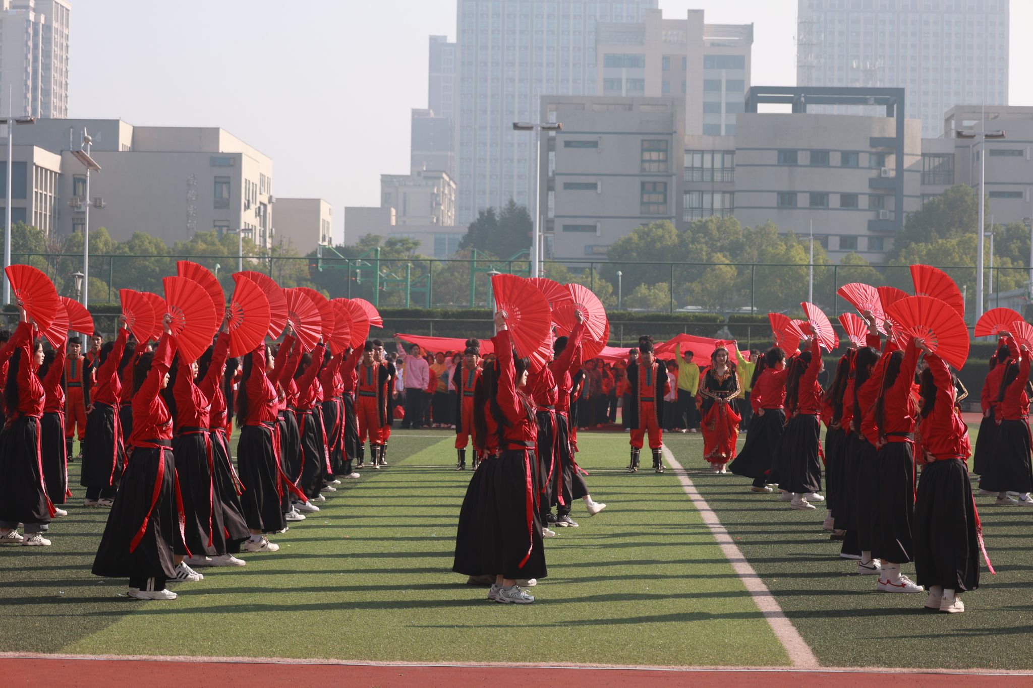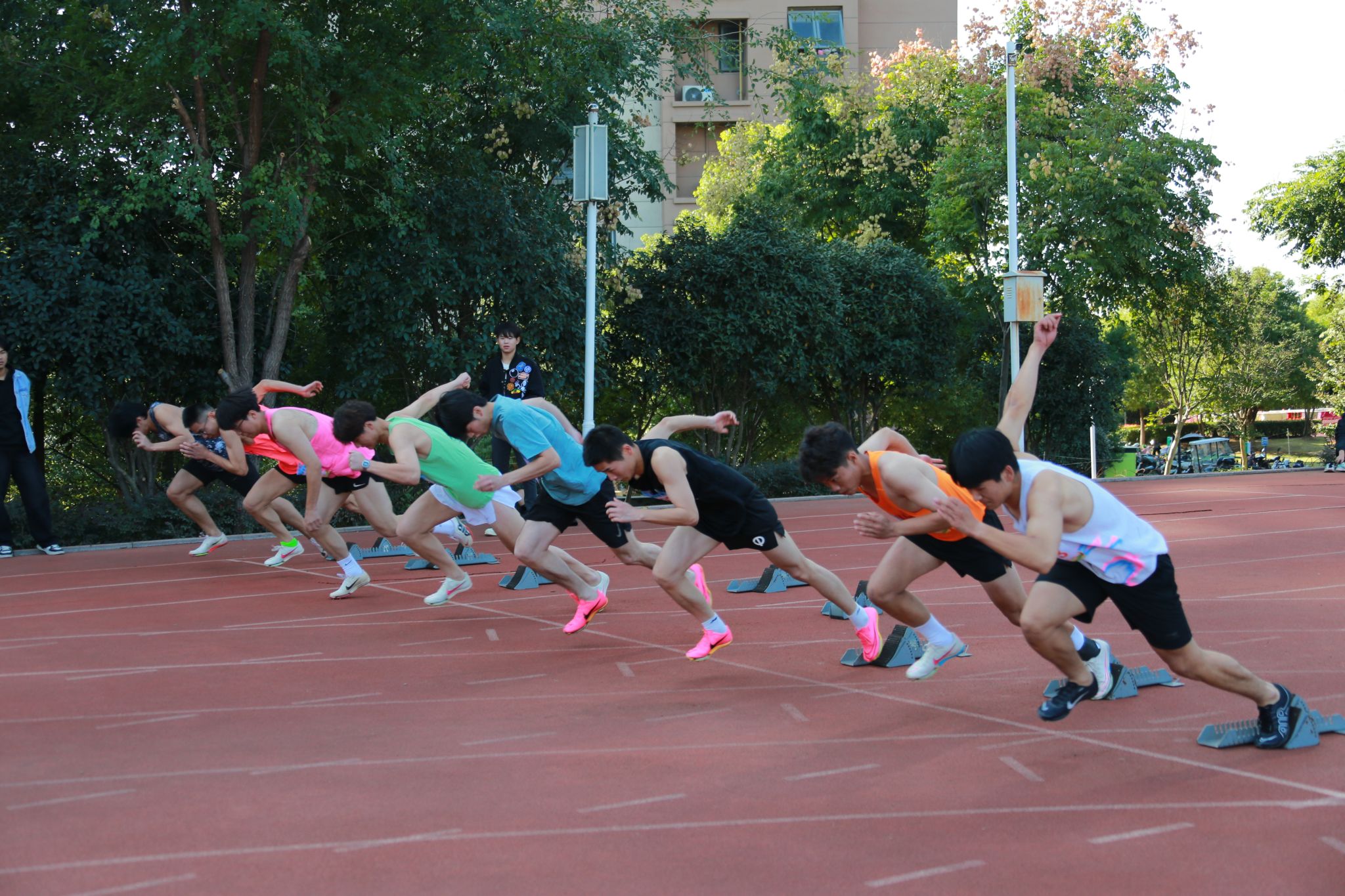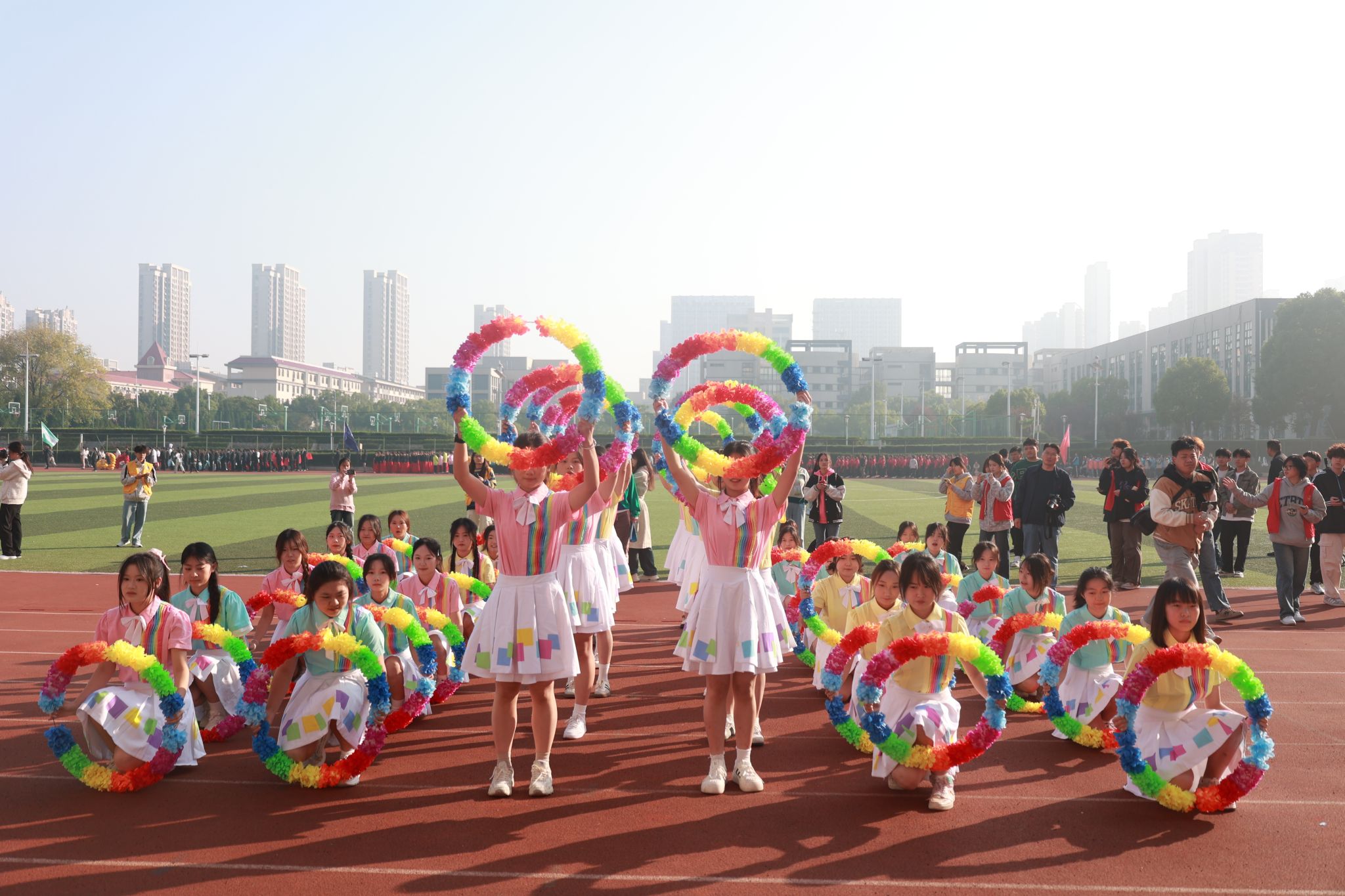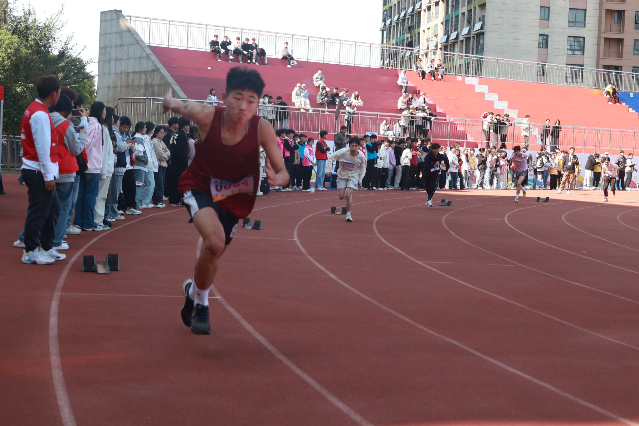 本届运动会吸引了来自全校7个代表队共1100名运动员的热情参与,在包括田赛、径赛及体质健康全能三大类别的16个小项中展开了激烈角逐。此外,还有700名同学以团体形式参加了三项非竞技性质的集体项目,充分展现了团队协作的力量与魅力。