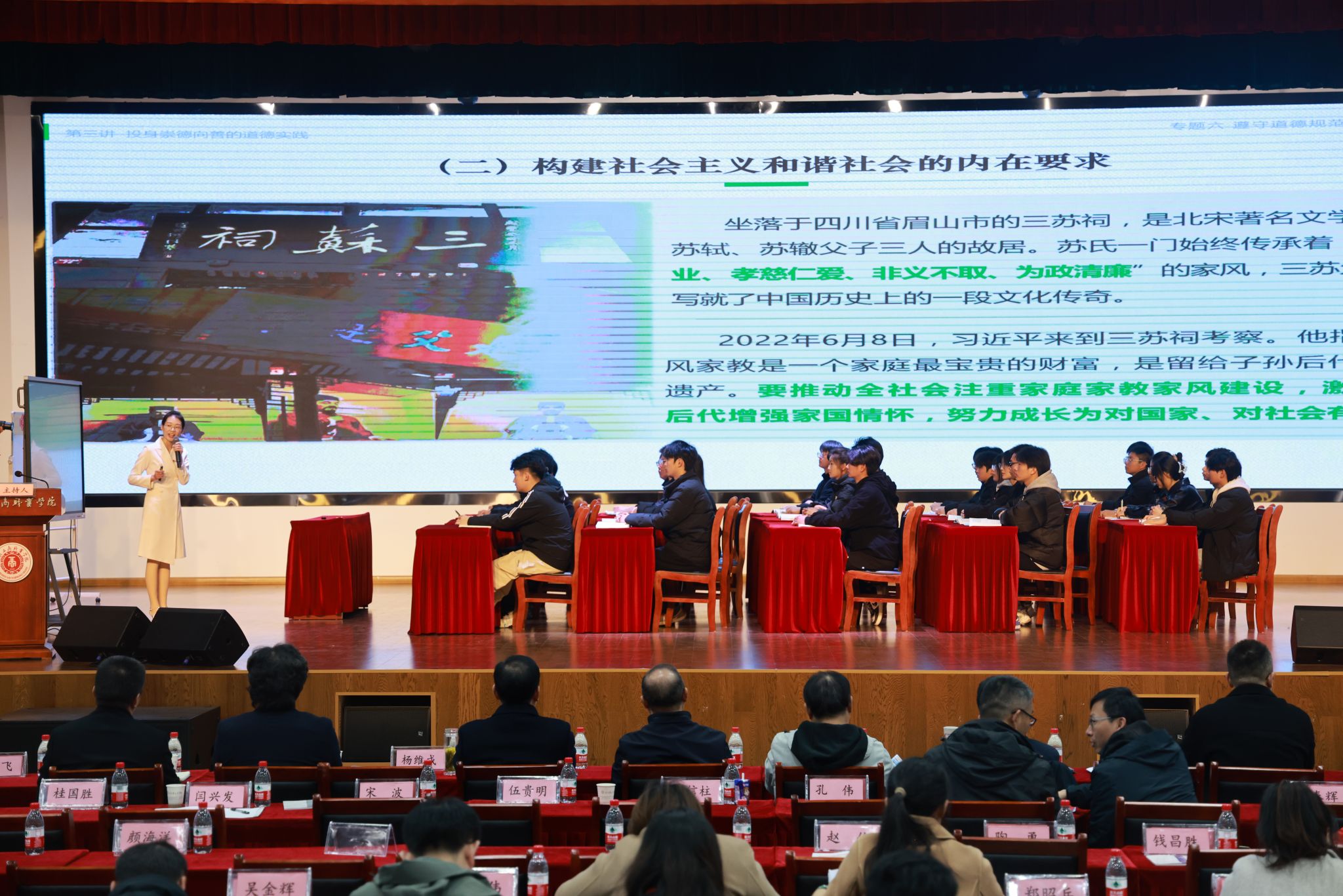 示范课展示环节,来自安徽工商职业学院、安徽国际商务职业学院、长丰县朱巷中学、长丰县第二中学和长丰县北城实验小学的五位教师代表围绕《弘扬家庭美德,传承良好家风家教》主题同课异构、同题共答、同台展示,共上一堂思政课。长丰县北城实验小学党支部书记、校长董飞虹,长丰县城关中学教科室副主任谭联合,合肥工业大学附属中学思政名师、安徽省特级教师曹勤,安徽省大中小学思政课一体化建设专家指导组组长刘新跃先后作精彩点评。