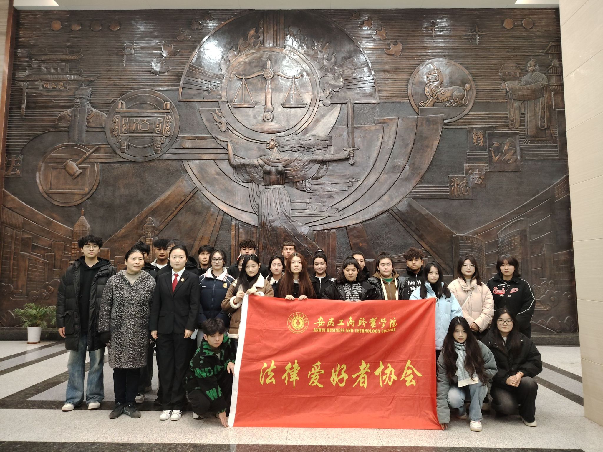 充分发挥第二课堂优势,着力加强体验式实践式教学,12月4日,在指导老师韦静的带领下,校法律爱好者协会组织学生前往庐阳区法院开展沉浸式法治实践教学活动。在讲解员的带领下,我校师生“零距离”与法官互动交谈,了解了庐阳区人民法院的历史与构成,系统学习了法院的运行机制和各部门的职责。参观法庭、调解室,观看庭审录像,全方位接受法治教育的深刻洗礼,进一步深化了学生的宪法意识、国家意识和规则意识,提升了宪法教育的影响力和感染力。