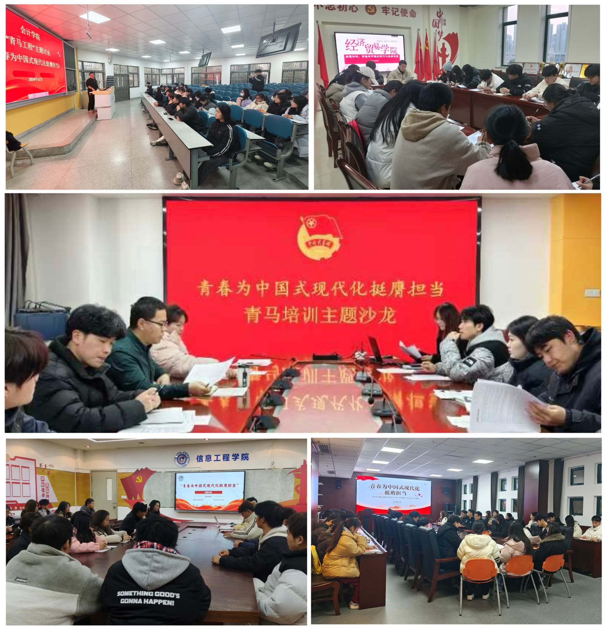 12月18日至20日,学员们在各二级学院团总支书记的带领下,分组进行了主题为《青春为中国式现代化挺膺担当》的青年沙龙,学员们在思想的碰撞中擦出了青春激扬的火花,纷纷表示要更加紧密地团结在以习近平同志为核心的党中央周围,坚定理想信念,胸怀“国之大者”,踔厉奋发、砥砺前行,绽放更加耀眼的青春光芒,谱写更加精彩的时代华章。