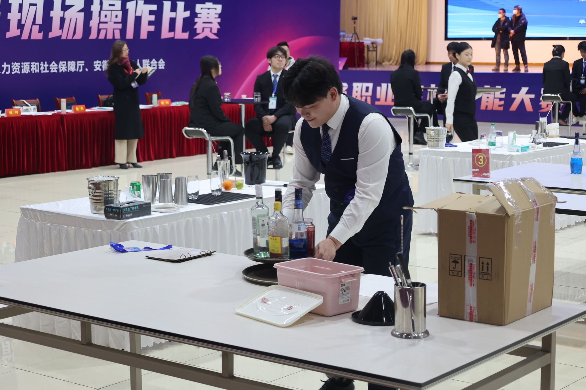 1月10日至11日,由安徽省教育厅、安徽省人力资源和社会保障厅、安徽省工业和信息化厅、安徽省残疾人联合会主办,我校承办的2024年“中银杯”安徽省职业院校技能大赛(高职组)“酒水服务”、“导游服务”和“烹饪”3个赛项在我校成功举办。来自全省36所高职院校的143名选手参赛。